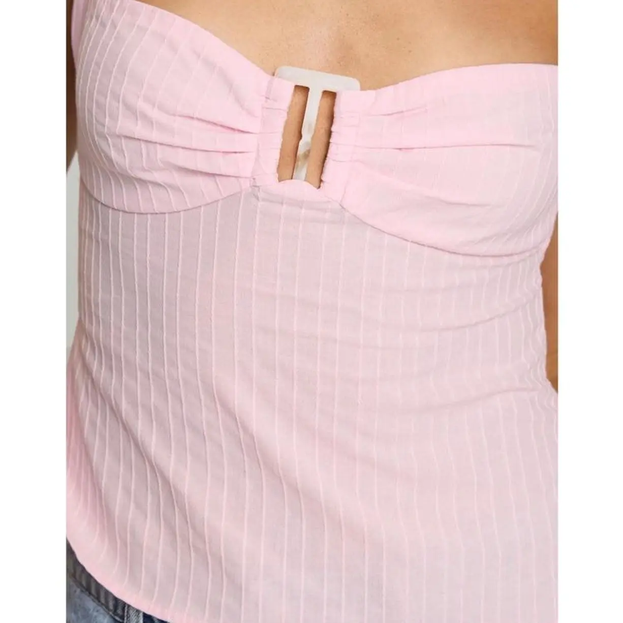 Ruched bust detail, silicone lining inside bust, invisible zipper on side, shirred panel at back, adjustable halter straps, slim fit