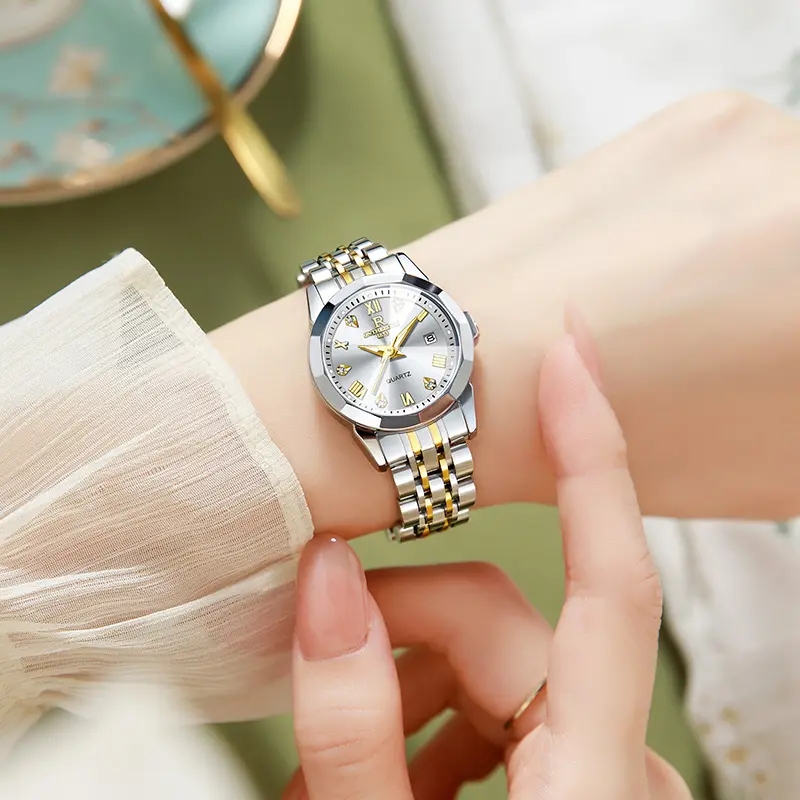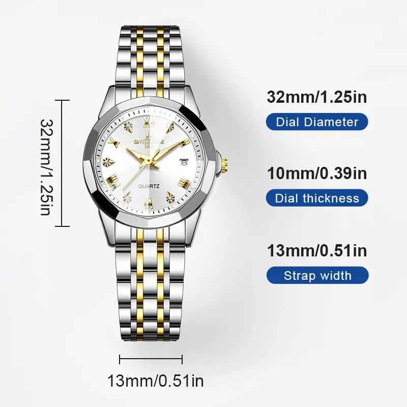Elegant Women's Two-Tone Gold Silver Quartz Watch - Stainless Steel Wristwatch with Date, Roman Numerals, Luminous Hands, Luxury Business Casual Dress Watch, Perfect Gift for Wife Girlfriend Mom