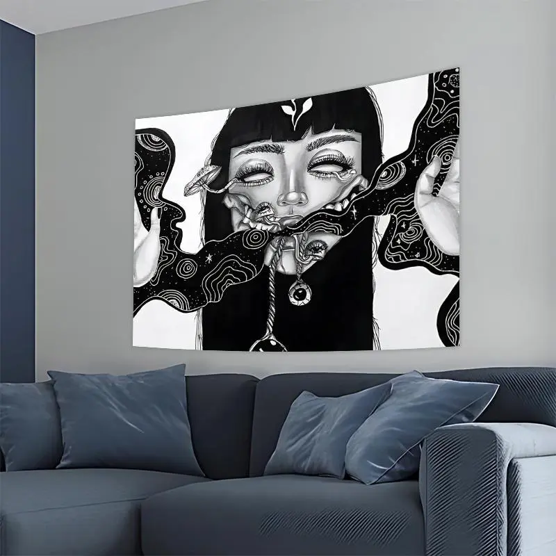 Abstract Horror Art Girl Pattern Tapestry, Creative Design Tapestry, Durable Decorative Tapestry, Wall Hanging Decor for Home Living Room Bedroom, Home Decor, Room Decor