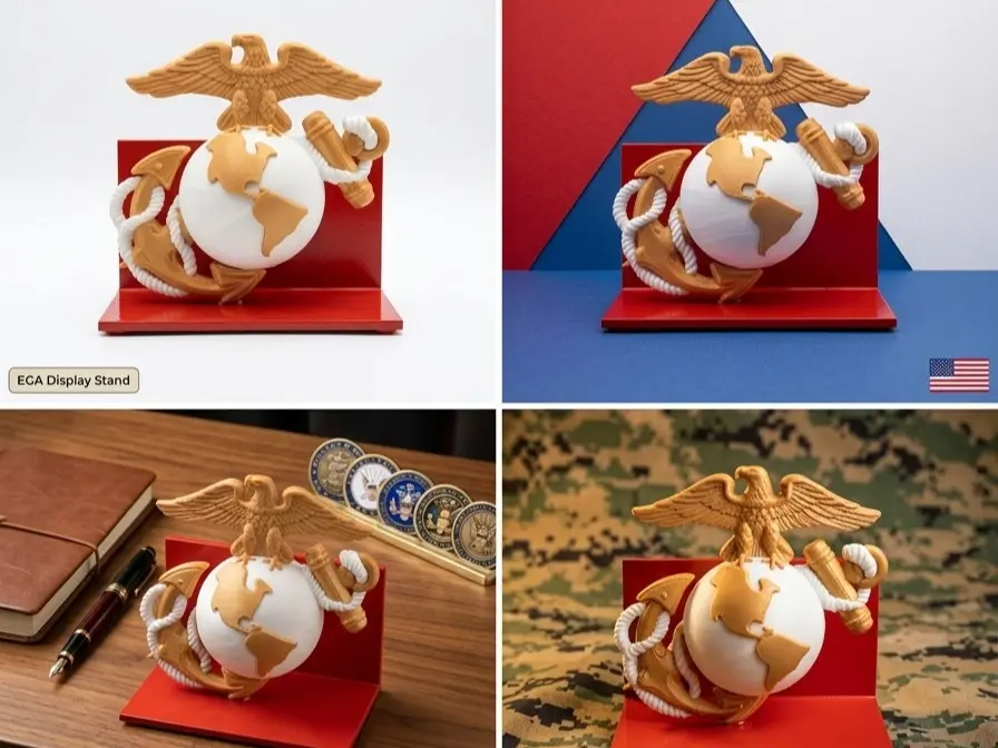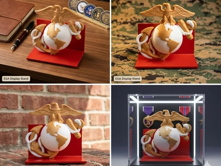 Semper Fidelis! Showcase your Marine Corps pride with this premium 3D-printed Eagle, Globe, and Anchor (EGA) display. This isn't just a model; it’s a tribute to the "First to Fight" spirit. Featuring the iconic eagle guarding the Western Hemisphere and the fouled anchor of our naval heritage, this piece is mounted on a striking red tiered base designed for maximum impact.