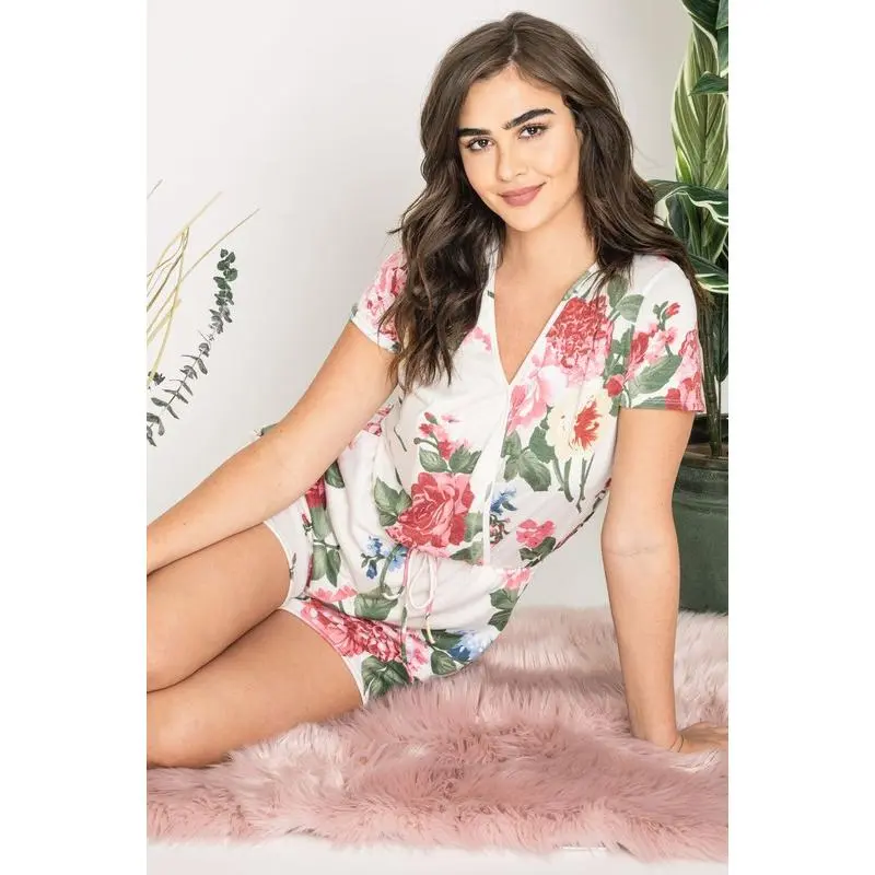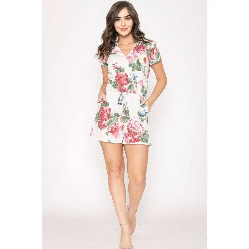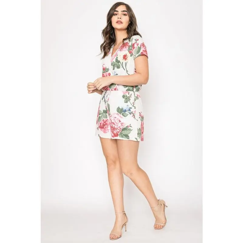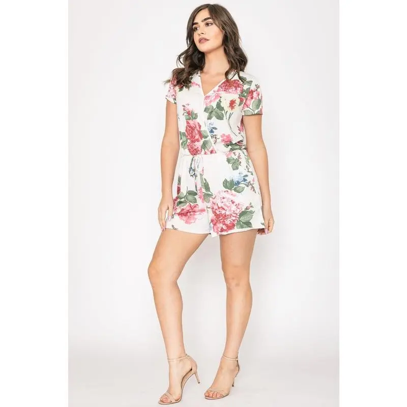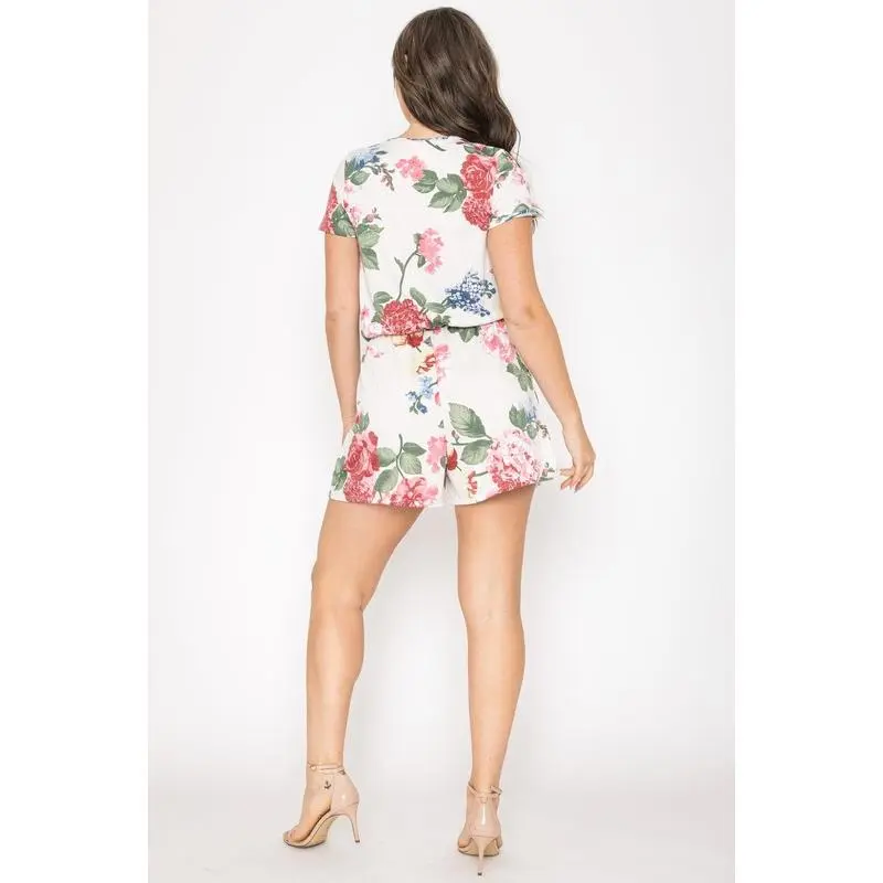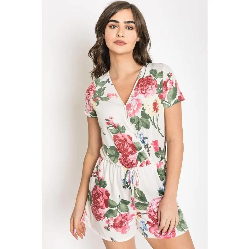 Surplice Drawstring Floral Romper Drawstring not adjustable