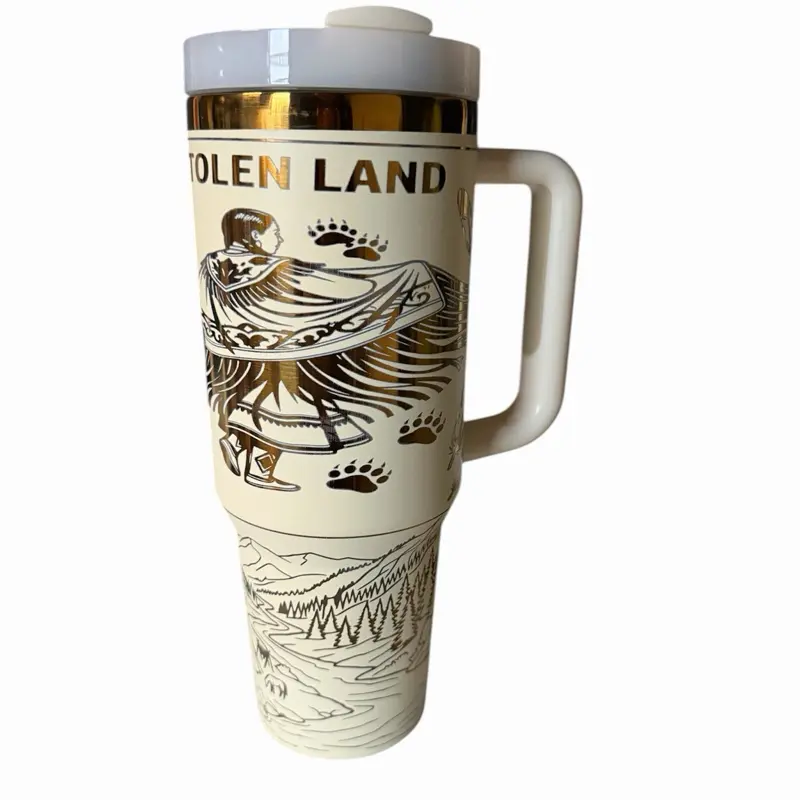 Engraved right at the center, it reads: “You’re on Stolen Land”—a powerful reminder that carries meaning wherever you go.