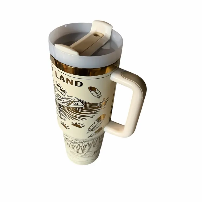 This 40oz cream white tumbler with a gold brim isn’t just drinkware—it’s a statement. ✨