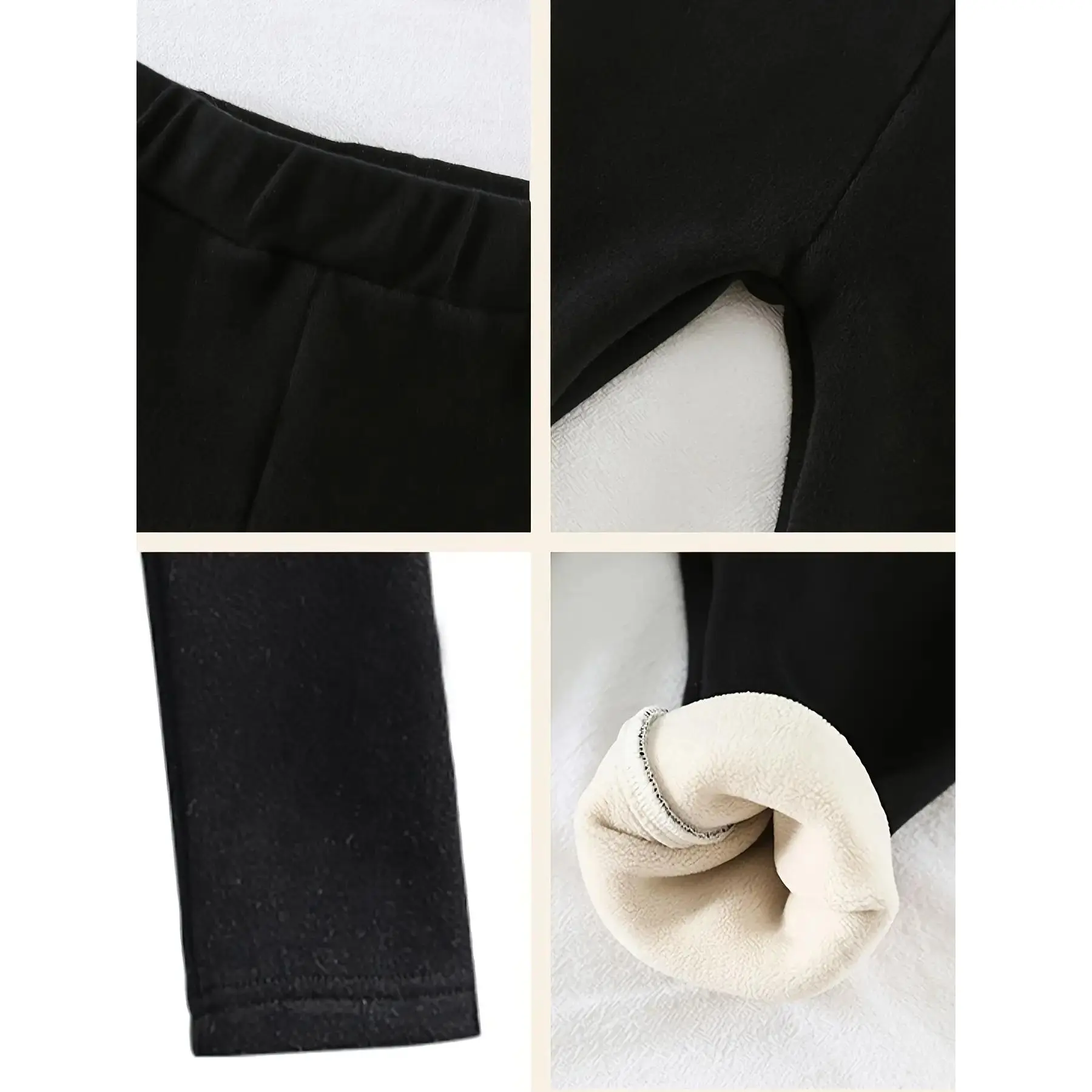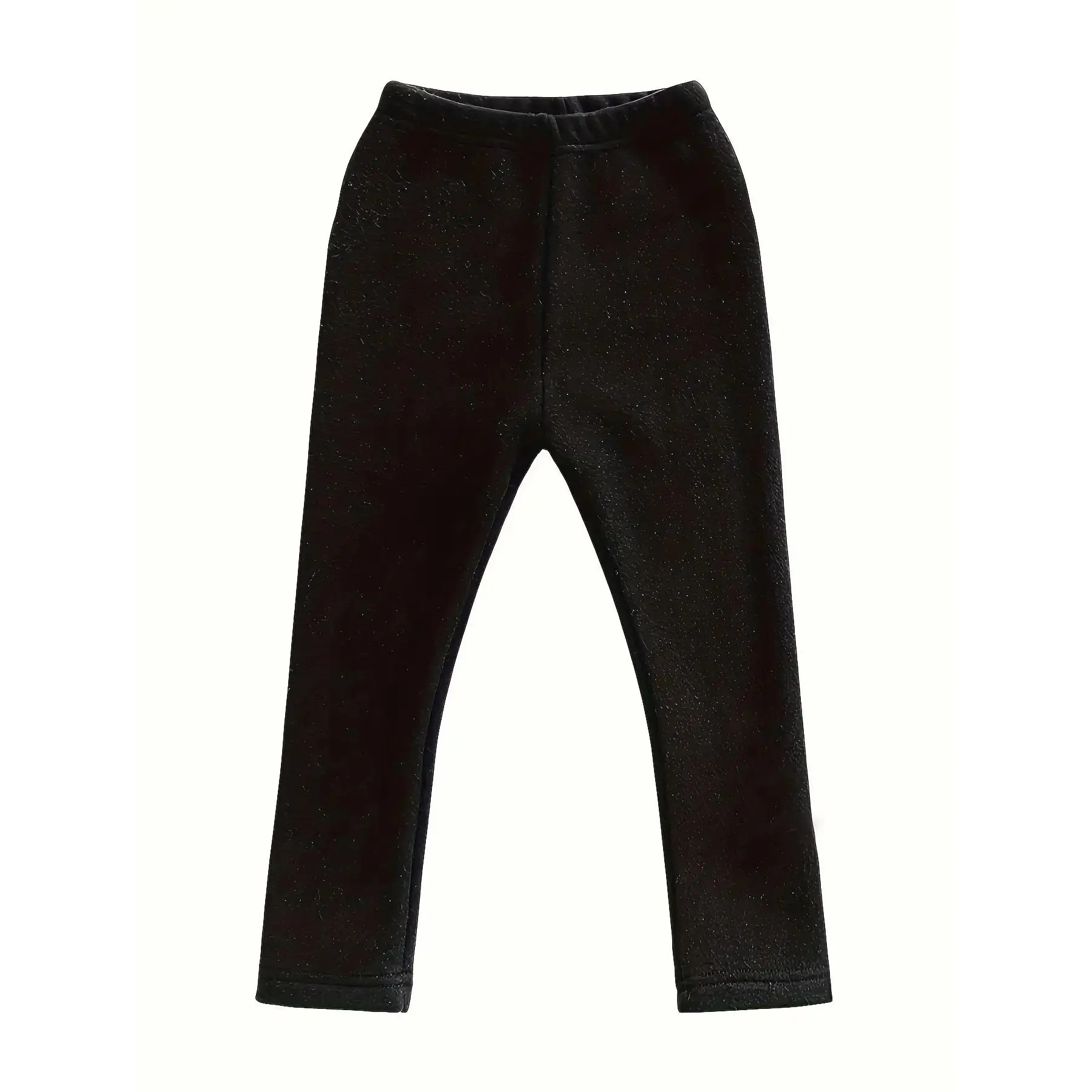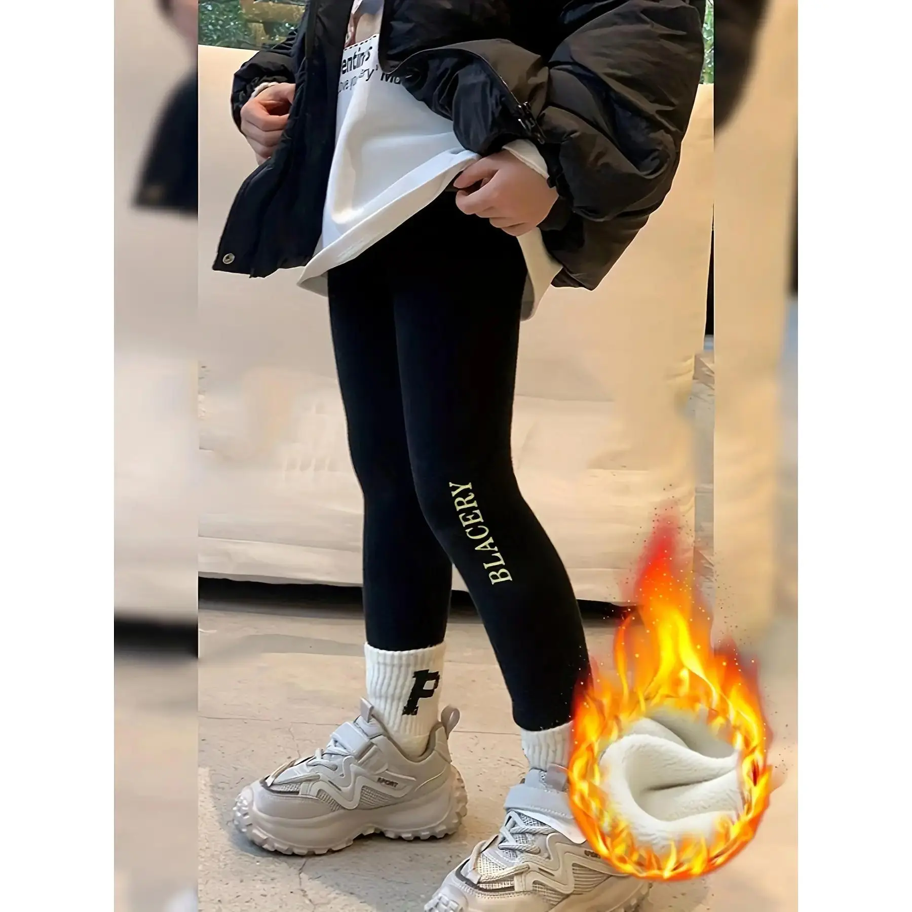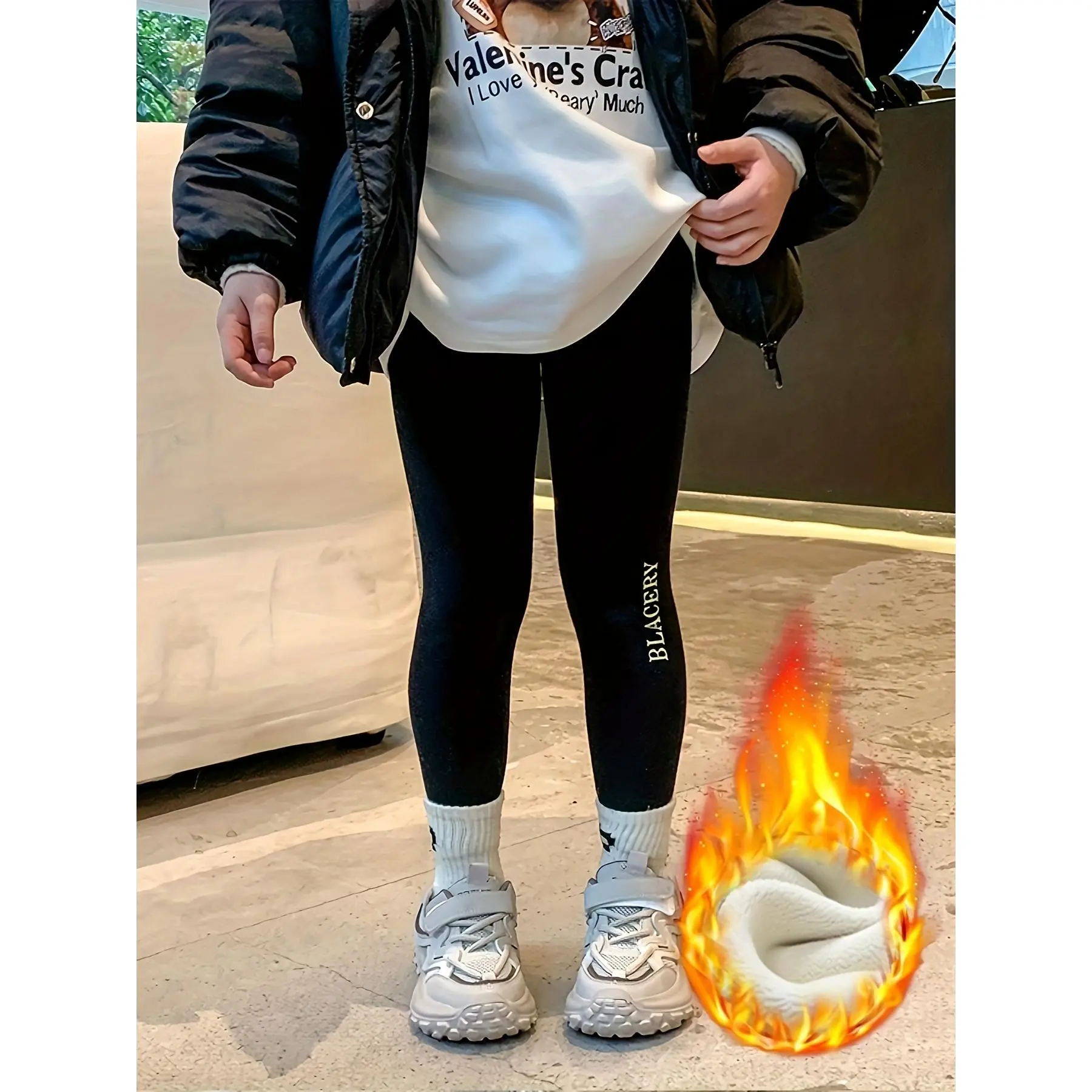 Cozy Fleece-Lined Girls' Leggings - Stretchy, Warm Winter Pants with Letter Print for Youngsters