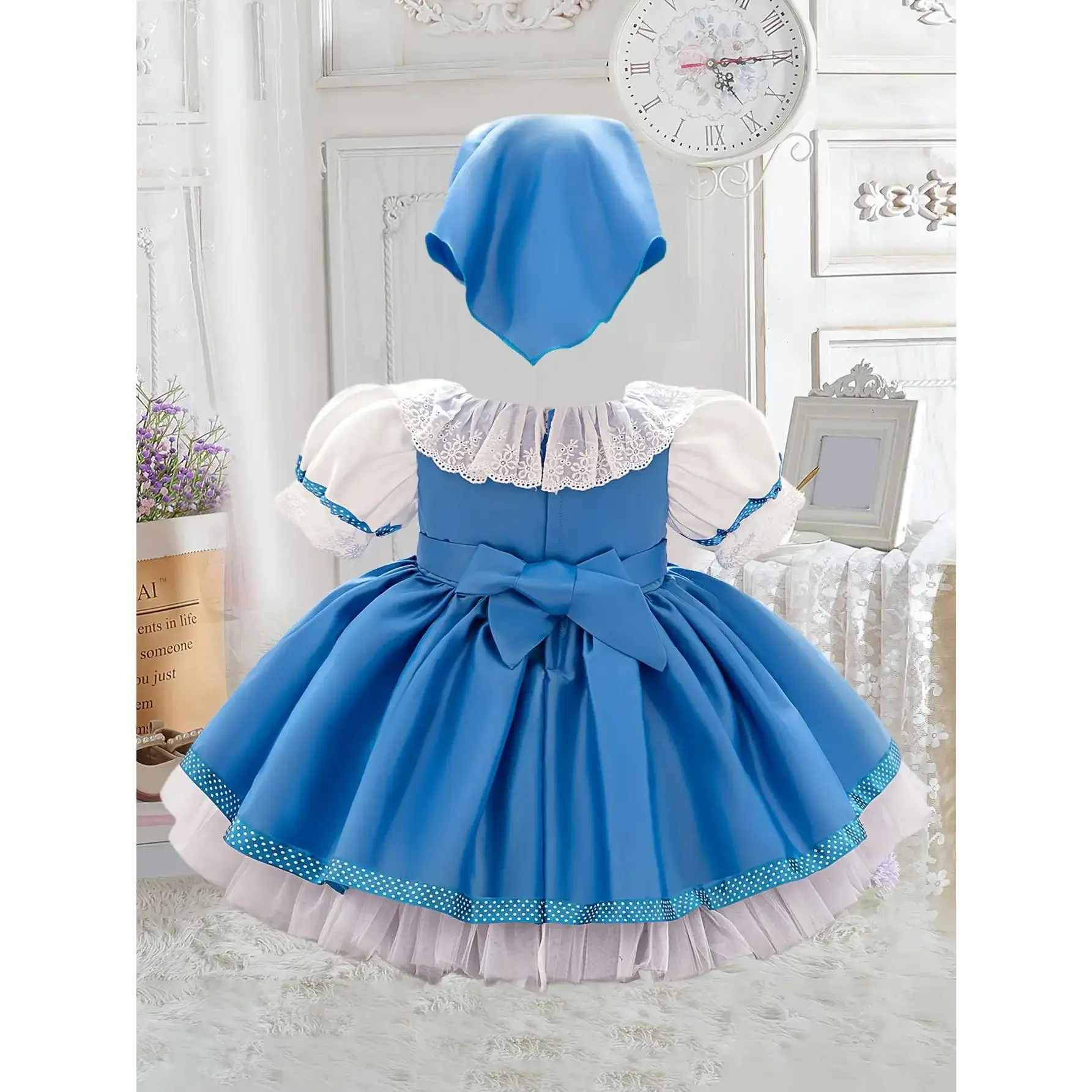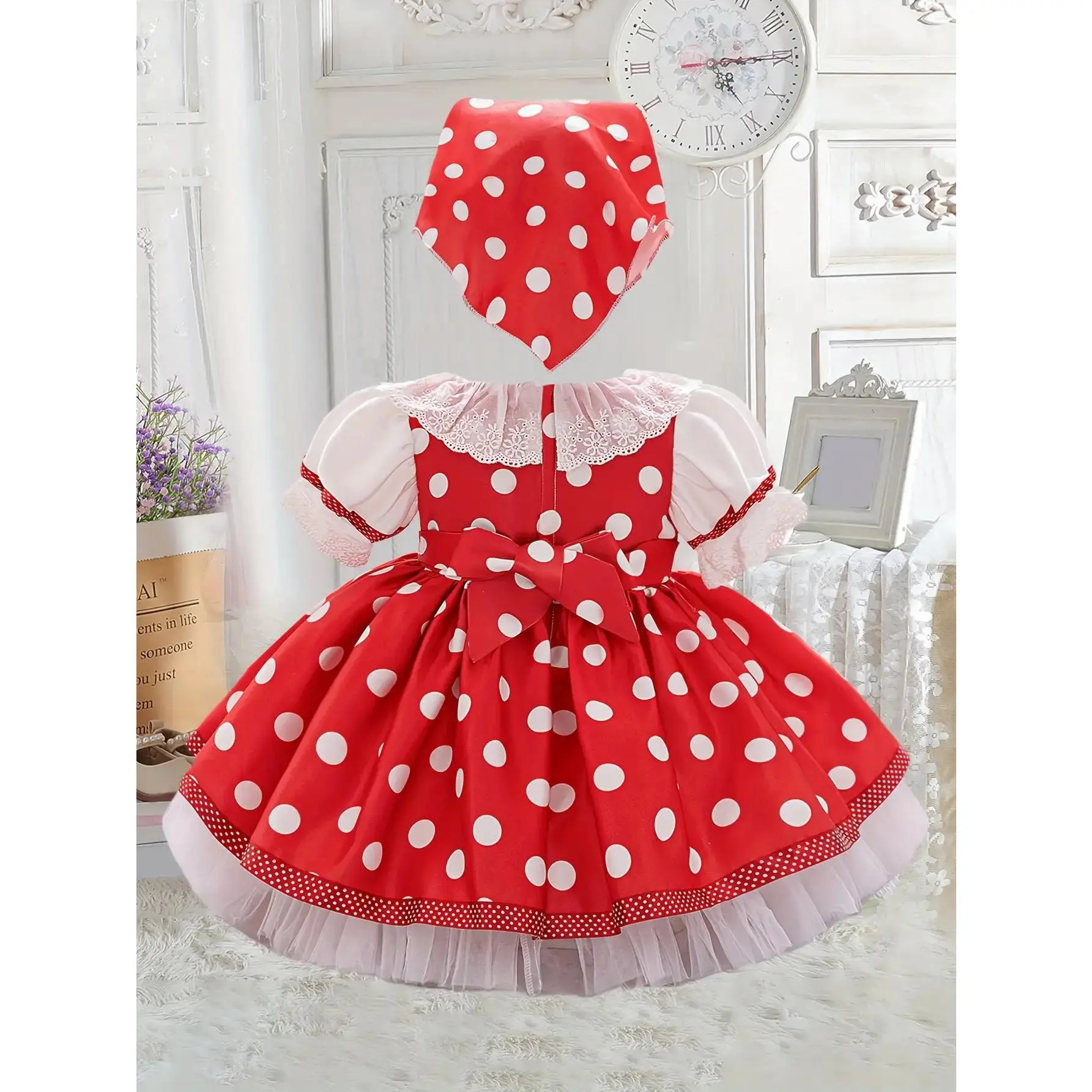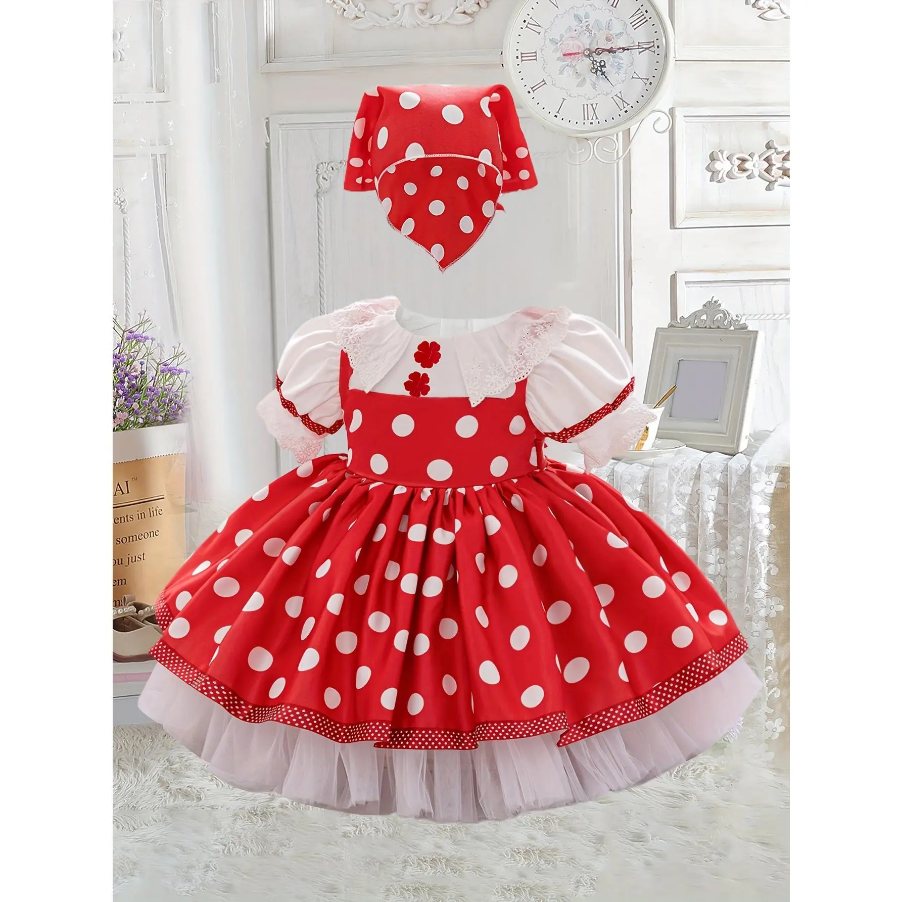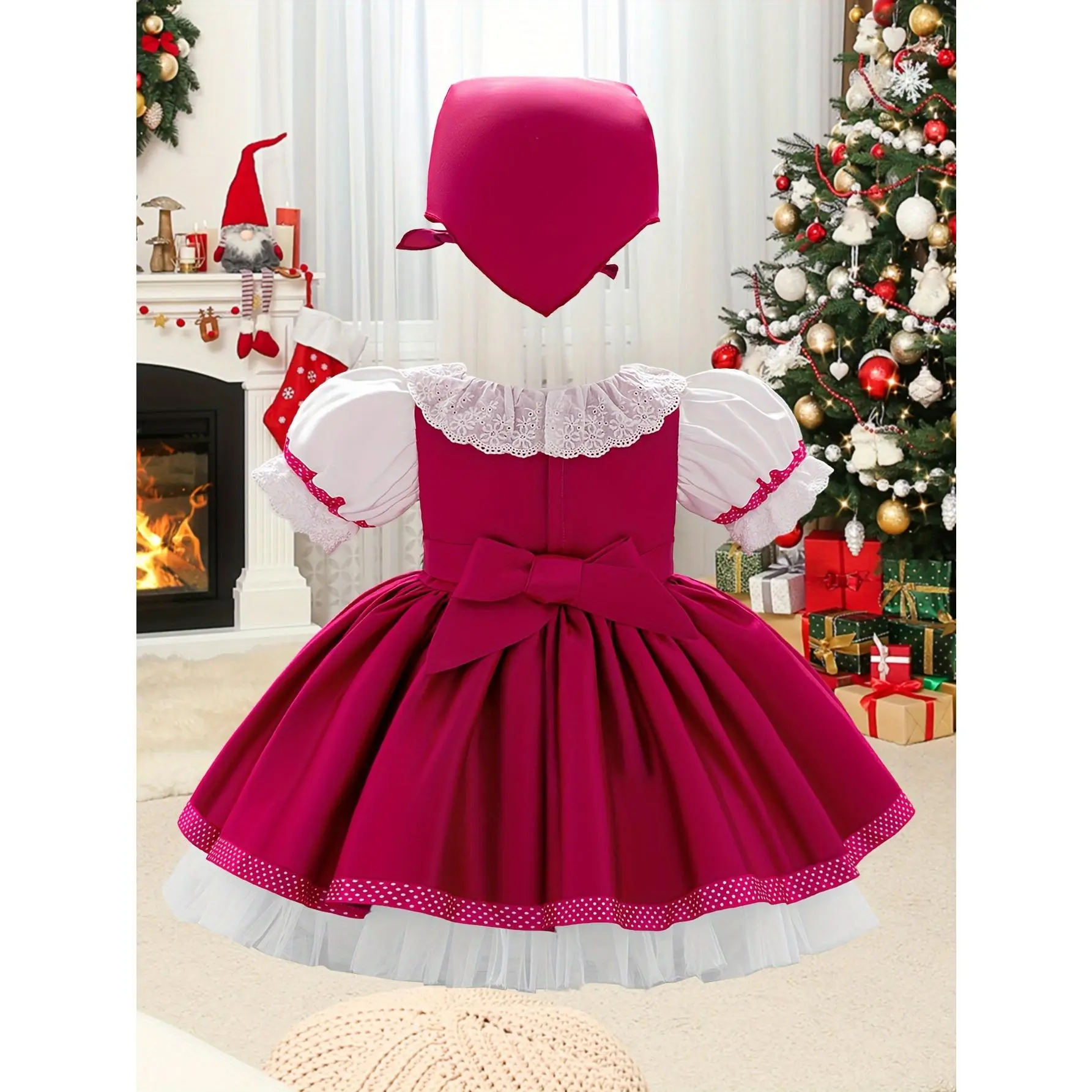 Adorable Pink Princess Dress for Little Girls - Elegant Lace Detail, Ruffled Skirt, and Matching Hat - Perfect for Christmas, Birthday, and Halloween Celebrations, Birthday Dress | Elegant Lace Detail | Ruffled Skirt Design, Christmas Dres