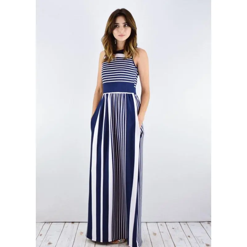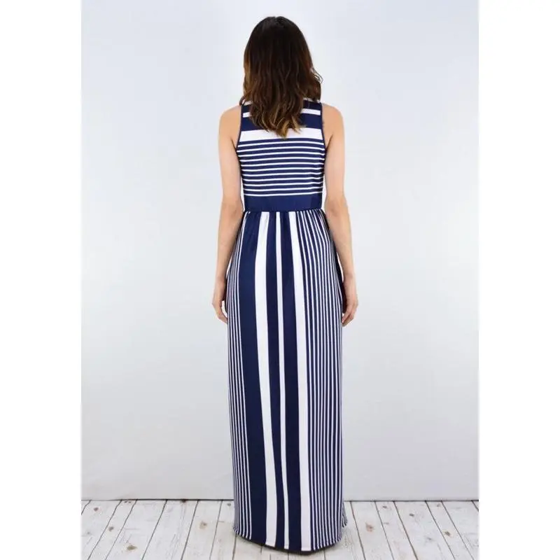 EG fashion Plus Stripe maxi dress with hidden pocket