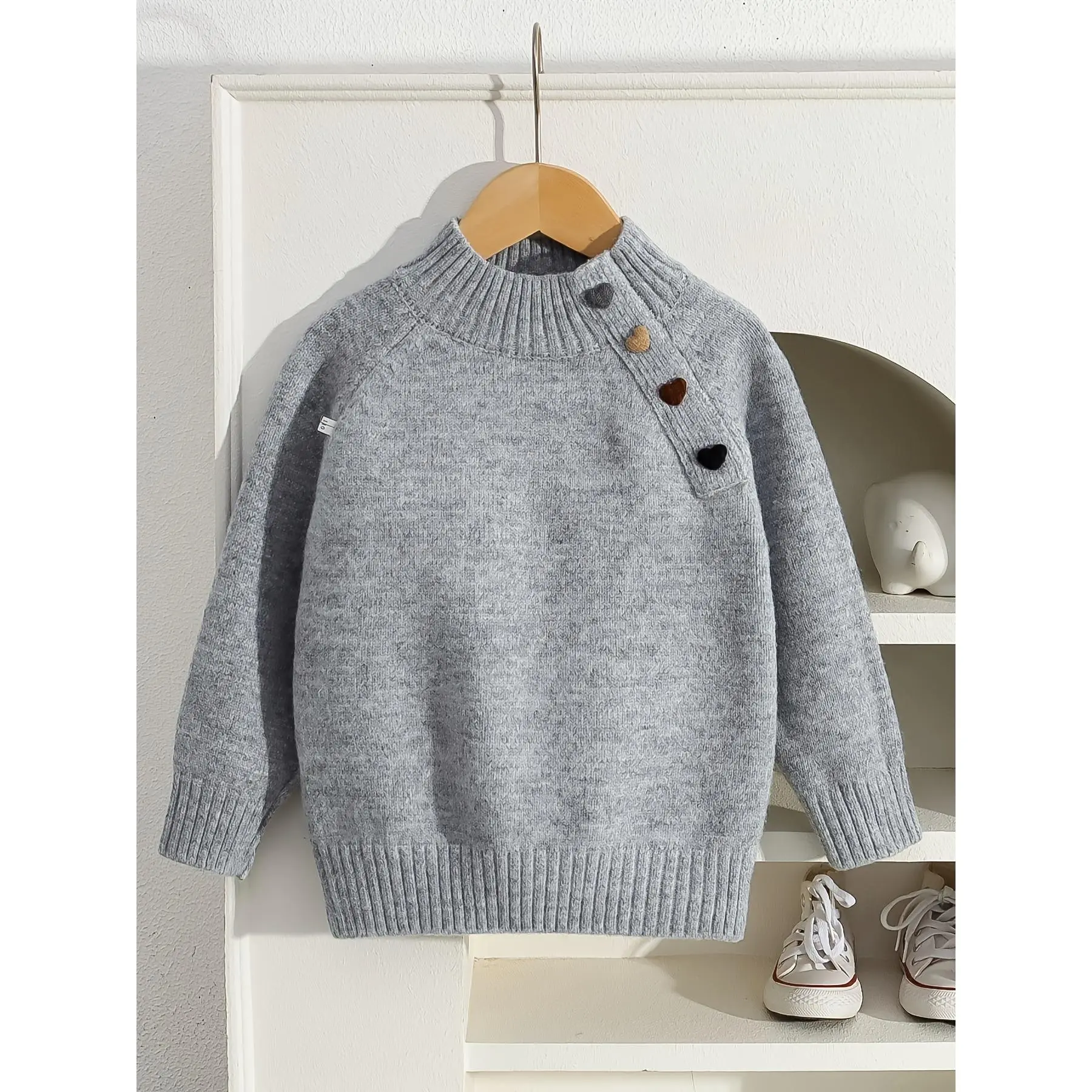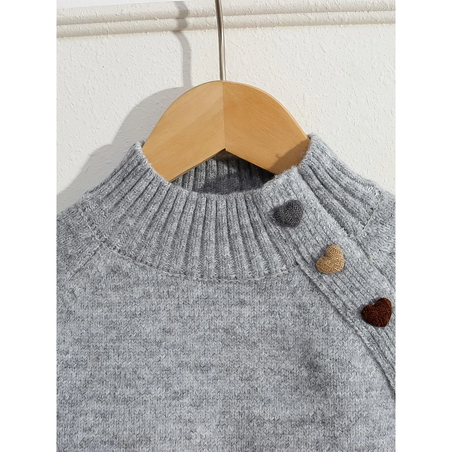 5. Girls' Cozy Knit Sweater - Long Sleeve Crew Neck, Geometric Pattern, Button Detail, Casual Pullover for Fall/Winter, Light Gray, Perfect for Casual Attire, Sweater Dress for Girls(Gift)11