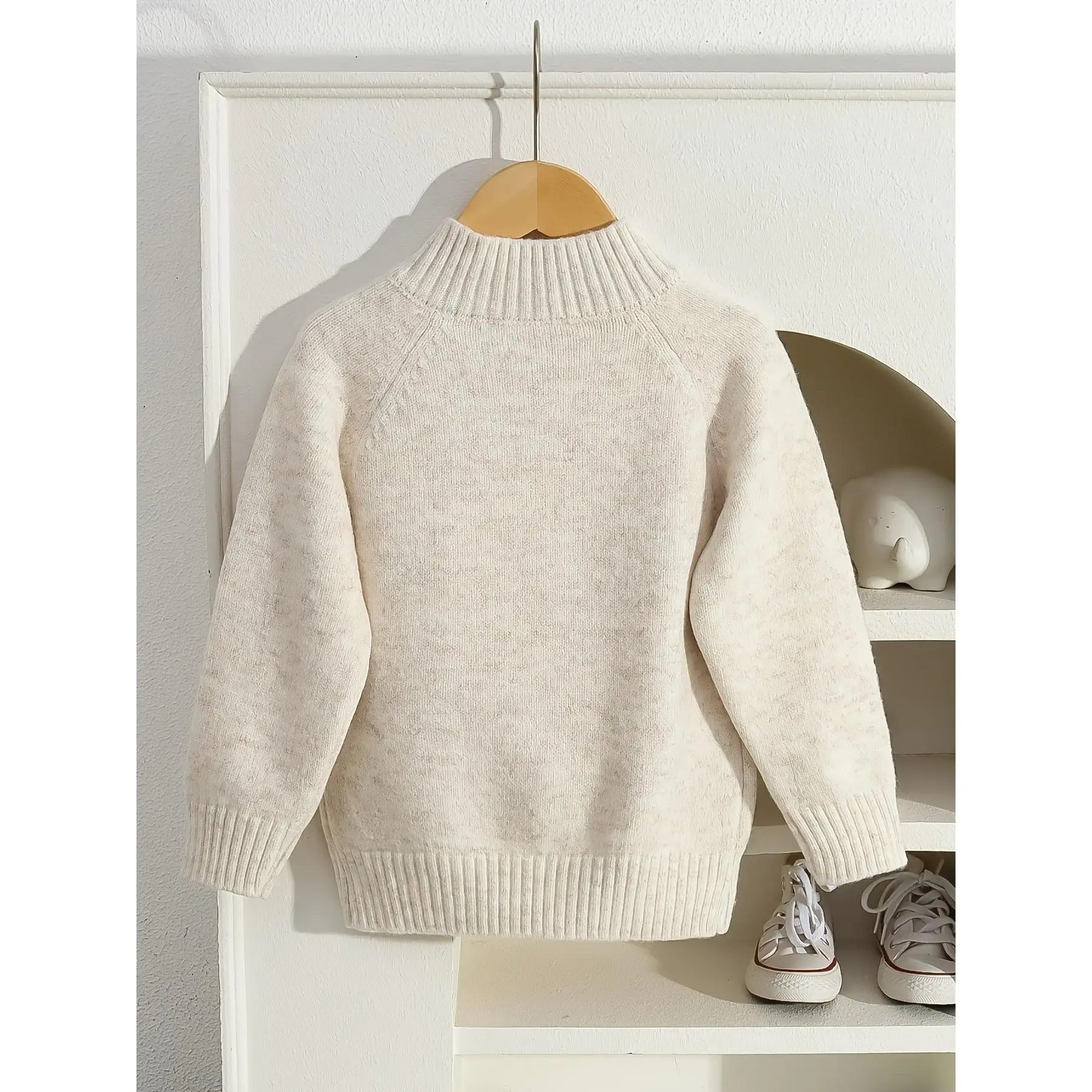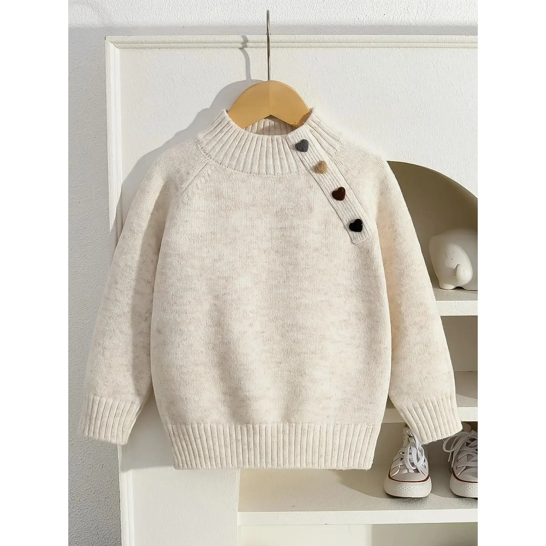 Girls' Cozy Knit Sweater - Long Sleeve Crew Neck, Geometric Pattern, Button Detail, Casual Pullover for Fall/Winter, Light Gray, Perfect for Casual Attire, Sweater Dress for Girls(Gift)11