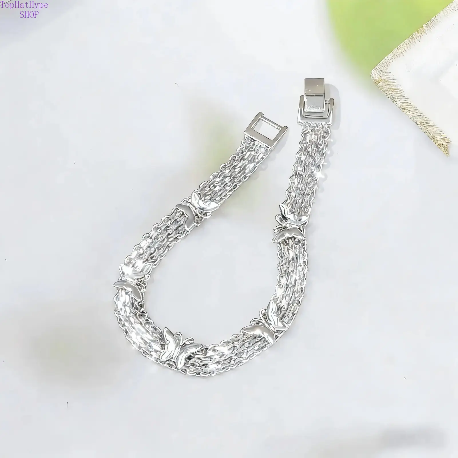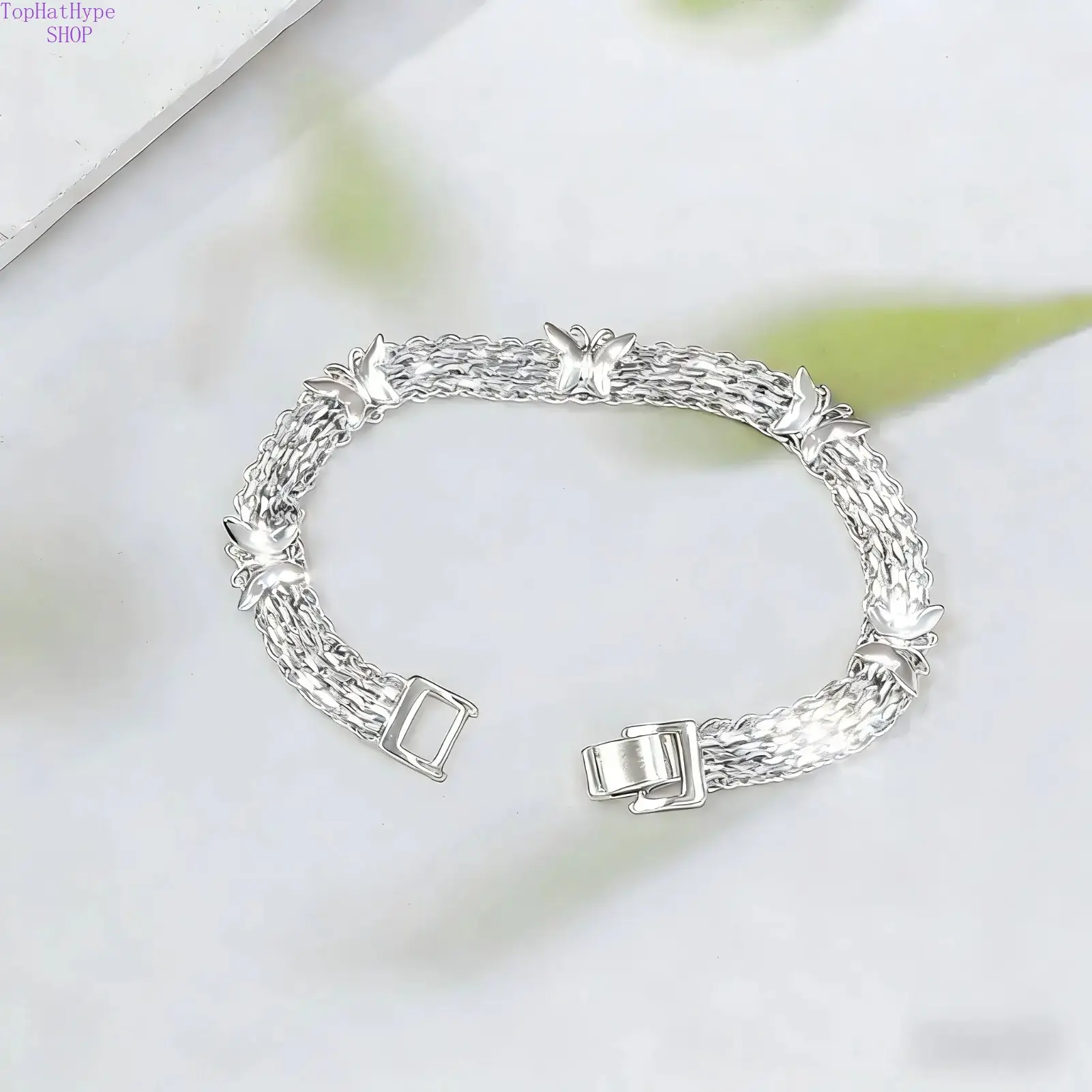 925 Sterling Silver Butterfly Charm Bracelet for Women & Teen Girls Dainty Adjustable Bracelet Trendy Aesthetic Jewelry Perfect Friendship Gift for BFF Bestie Birthday Graduation Daily Wear