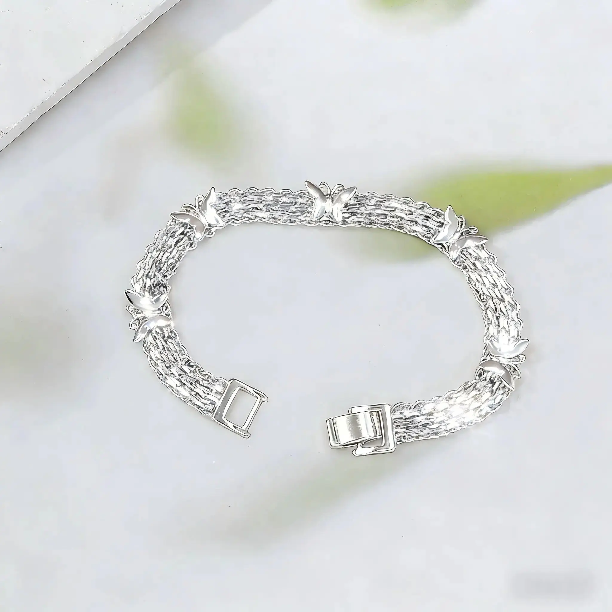 925 Silver Butterfly Charm Bracelet for Women CuteFriendship Jewelry Gift: This 925 silver butterfly charm bracelet is perfect for gifting to your best friend. It's a cute and meaningful accessory that showcases your friendship. Material and Design: The bracelet features a beautiful butterfly charm, crafted from 925 silver. It's a delicate and elegant piece that adds a touch of charm to any outfit. Ideal Gift: This bracelet makes an ideal gift for your best friend. It's a thoughtful and charming present that will be appreciated. Versatile Wear: The bracelet is suitable for various occasions, whether it's a casual day out or a special event. It's a versatile accessory that complements any look.