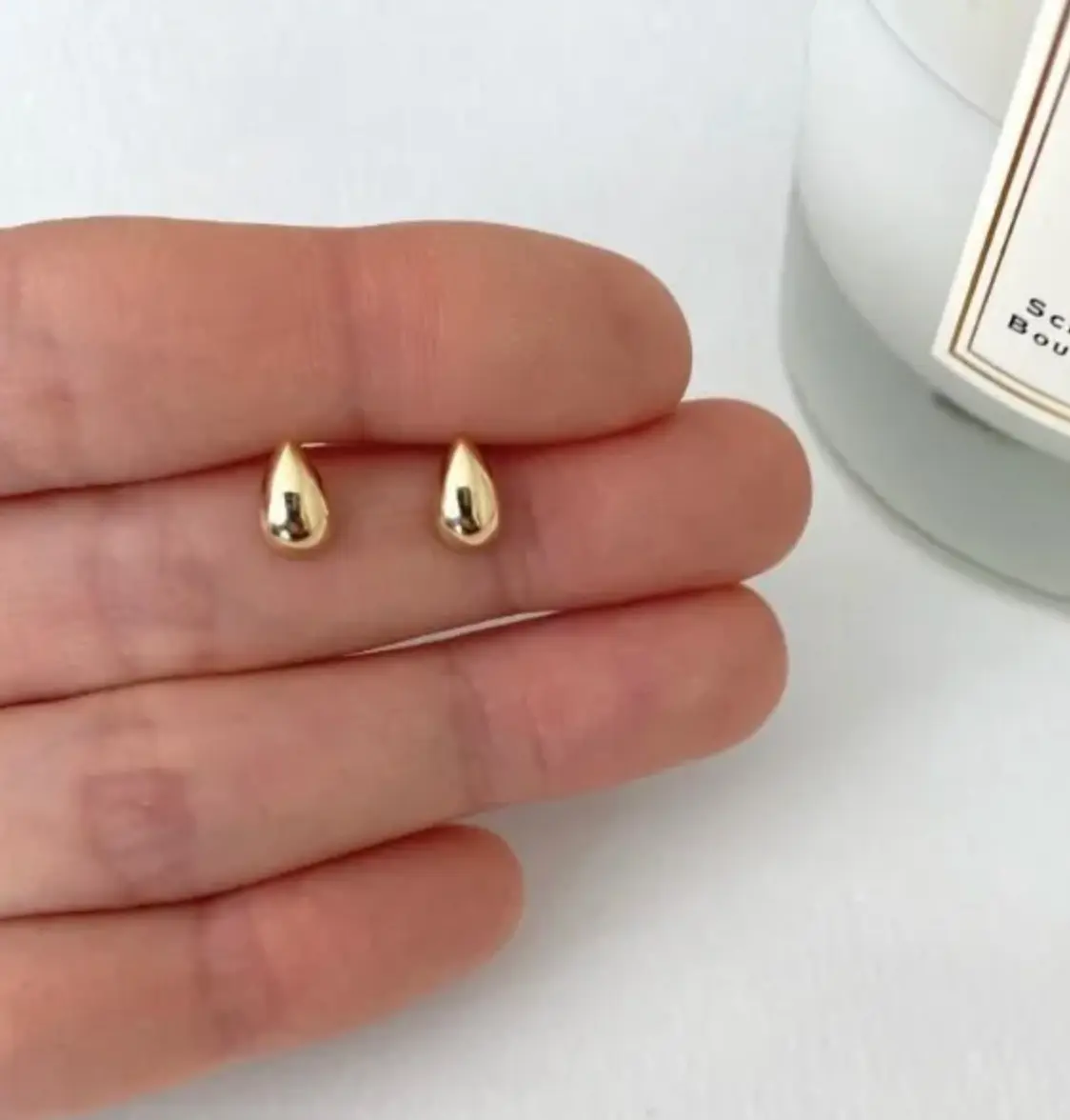 PAVOI 14K Gold Plated 925 Sterling Silver Post Teardrop Chunky Hoop Earrings - Chunky Drop Pendant Necklace & Stud Earrings Bundle for Women - 22mm and 31mm