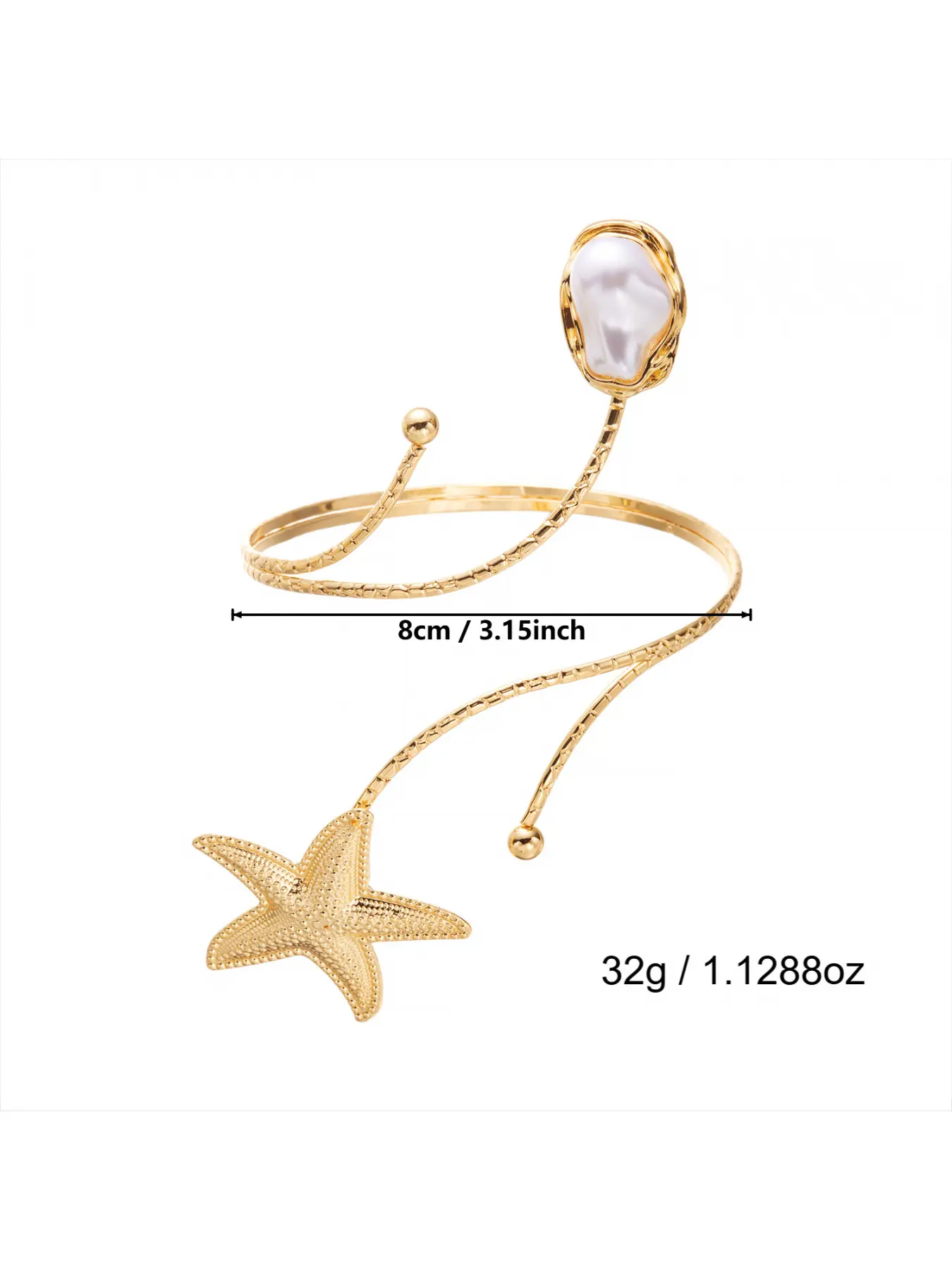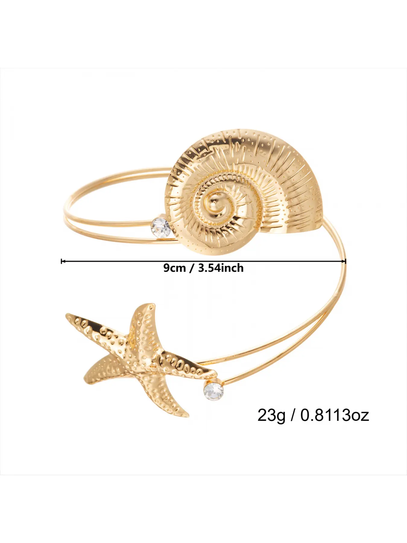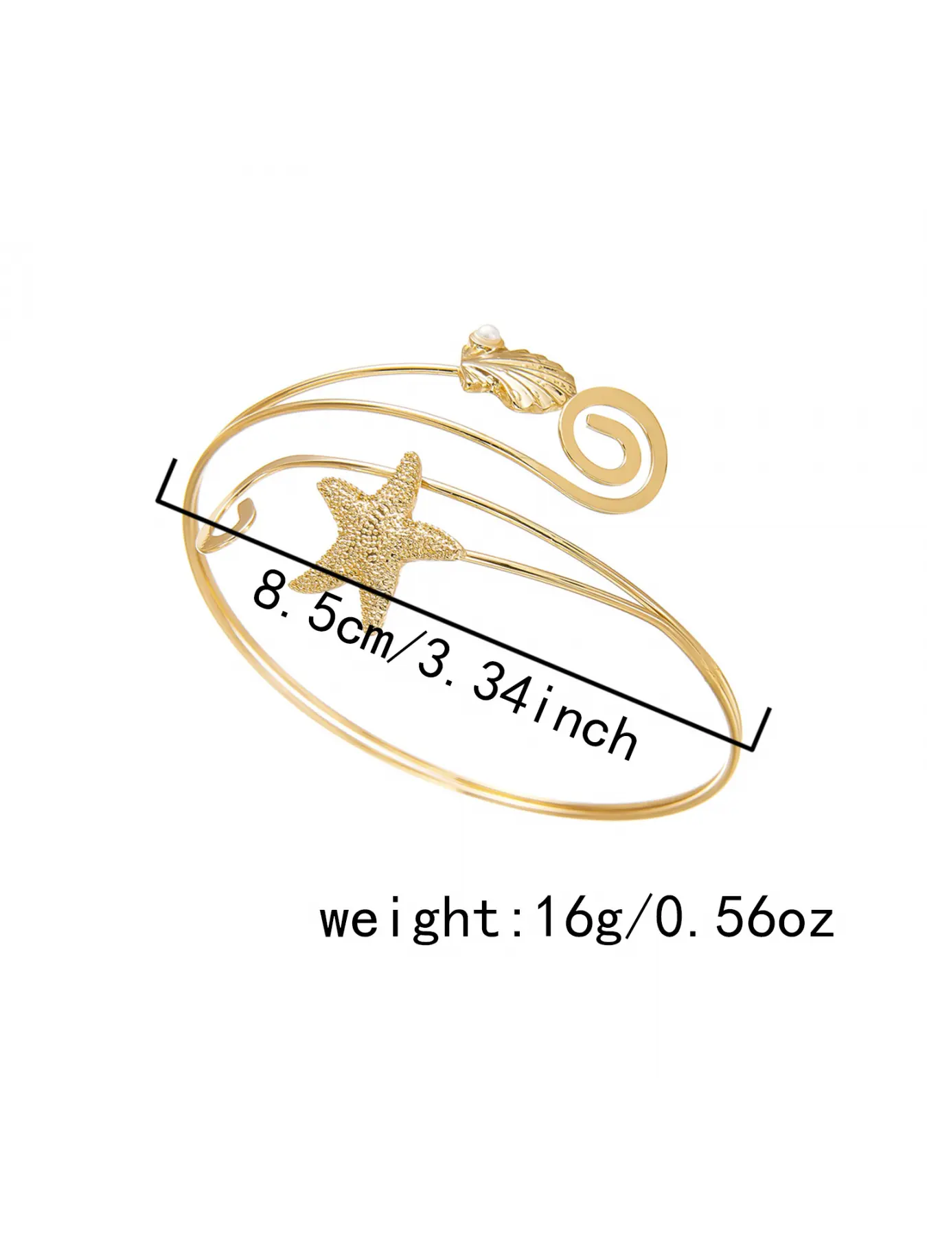 5. Elegant Starfish and Seashell Open Bangle Bracelet for Women Adjustable Metal Arm Cuff Jewelry Trendy Ocean Inspired Fashion Accessory Summer Beach Style