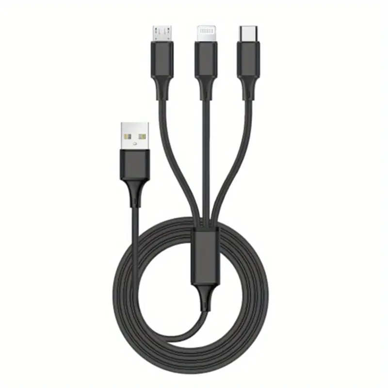 This 3-in-1 Fast Charging Cable supports Lightning, Type-C, and Micro USB. Perfect for iPhone and Android devices. No more switching cables. Charge your devices effortlessly with this multi-charger cord.