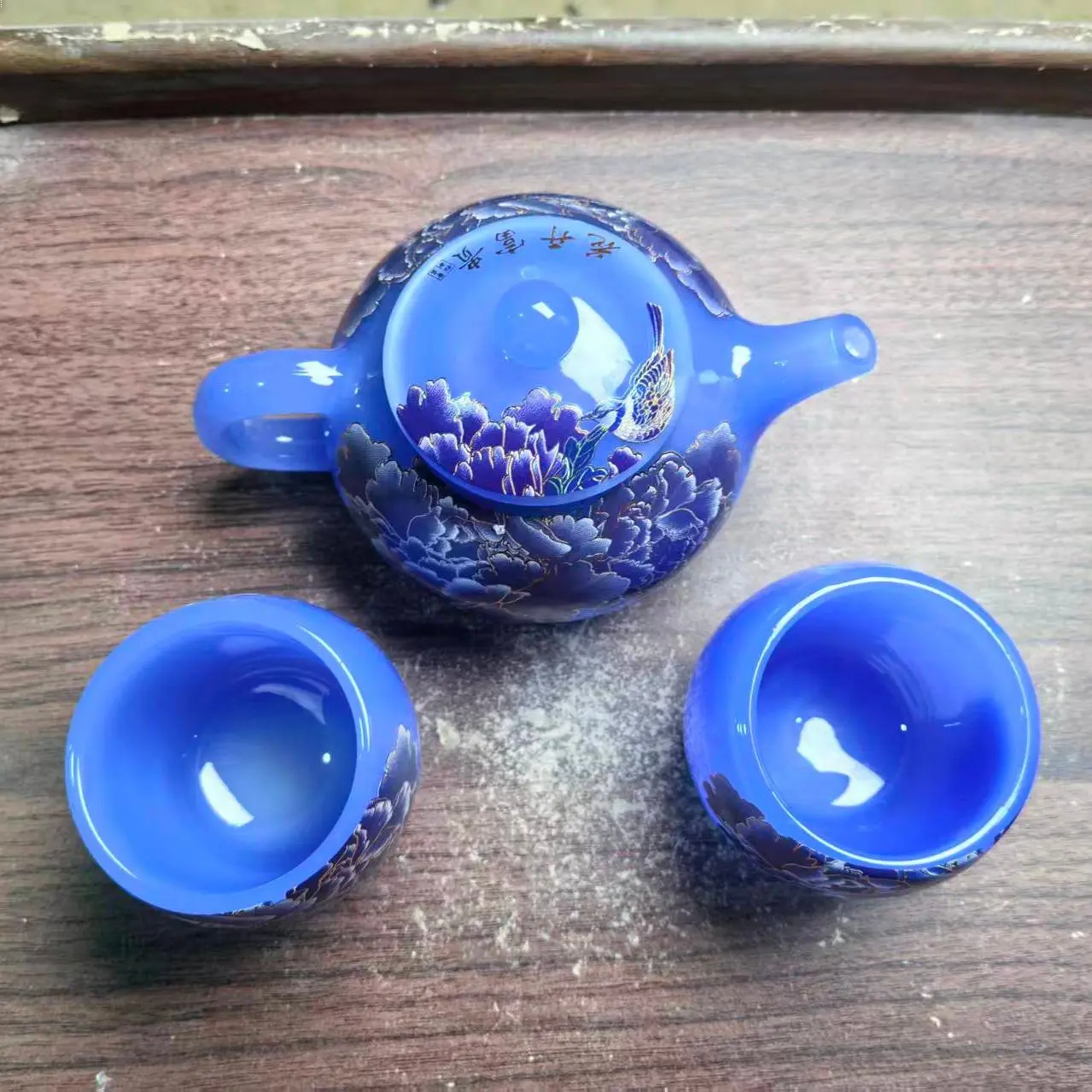 Changing Color Blue Teapot Set with Flower Patterns