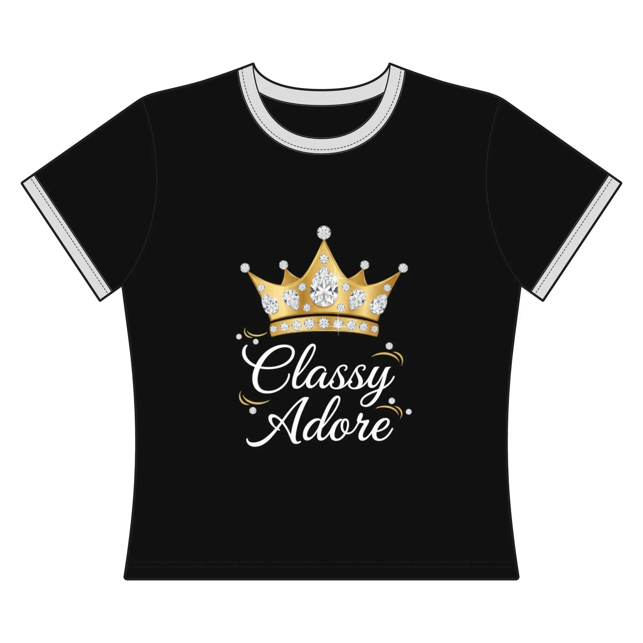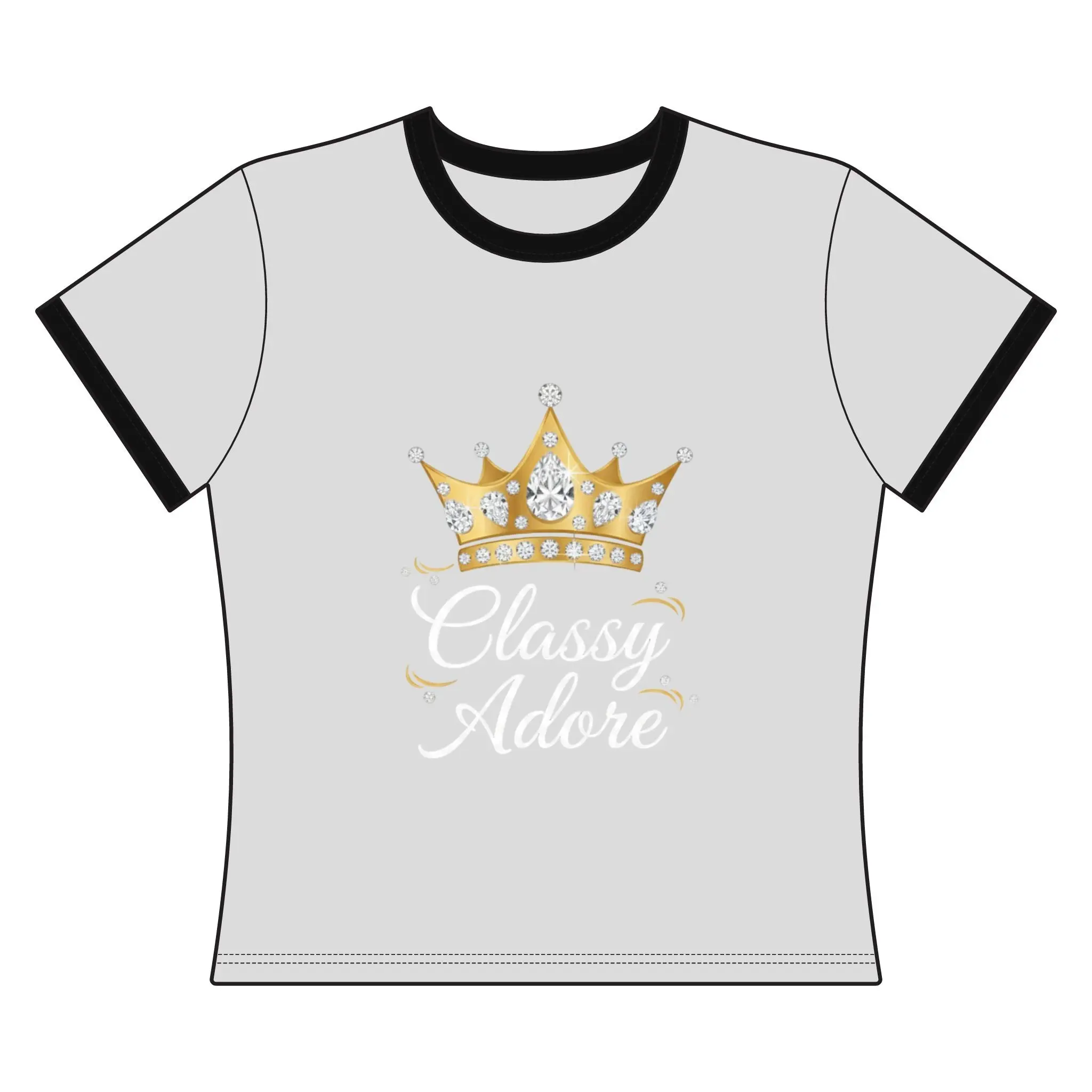 A crown isn’t always gold and jewels — sometimes it’s a crop tee that just hits different. The Classy Adore “Bold Crown” Crop Ringer Tee brings that retro-meets-elevated energy to your everyday wardrobe. Cropped. Confident. Classy without even trying.