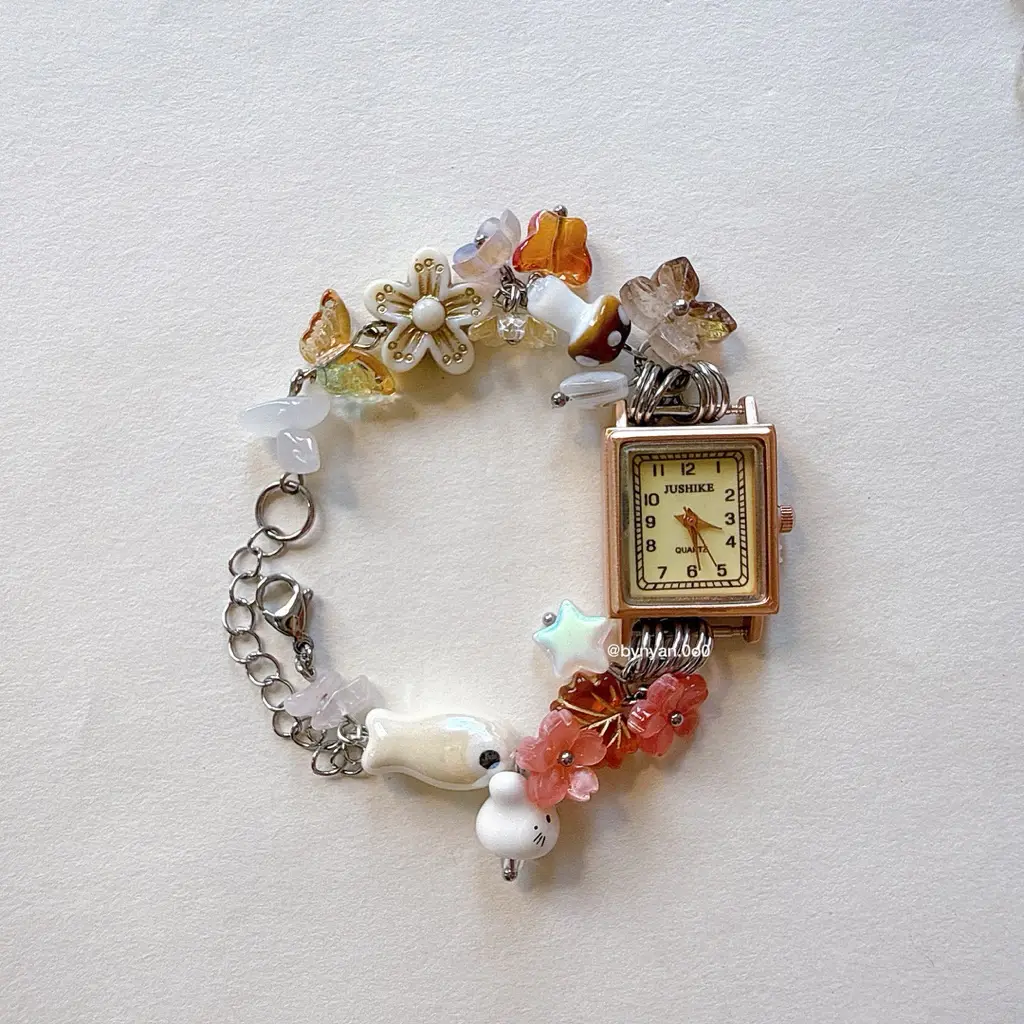 Handmade Flower Charm Watch – Beaded Aesthetic Watch, Cute Gift for Friends