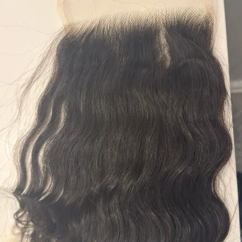 Raw HD Wavy 150% Density Donor Hair Closure (12”–26”) by Amber Blu Luxury Hair Extensions. Made from 100% single donor hair with cuticles aligned and single knots throughout for a natural scalp look. Ultra-thin HD lace with pre-bleached knots for a flawless melt. Full 150% density, soft, voluminous, holds curls and straightens sleek. No tangling, minimal shedding. Pair with our Raw Indonesian Wavy Bundles for the perfect blend. Tap the orange cart to shop luxury.