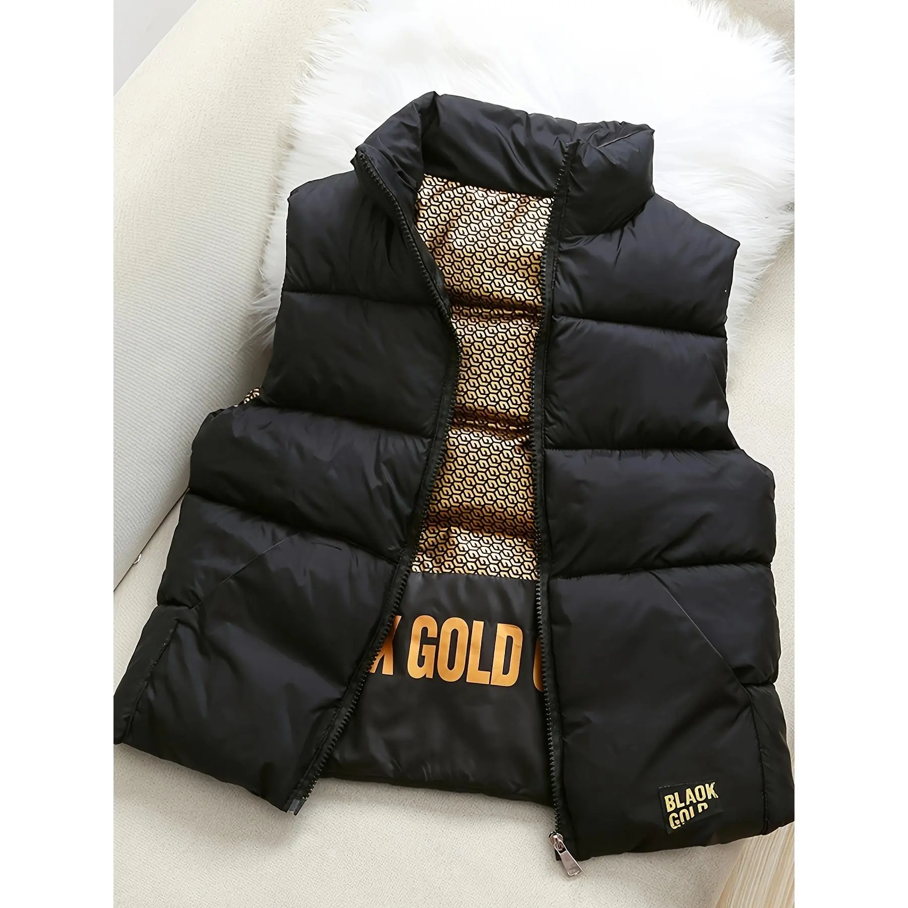 Warm And Cozy Label Patched Vest, Full Zipper Warm Sleeveless Outwear For Boys And Girls - Perfect For Autumn And Winter Clothes