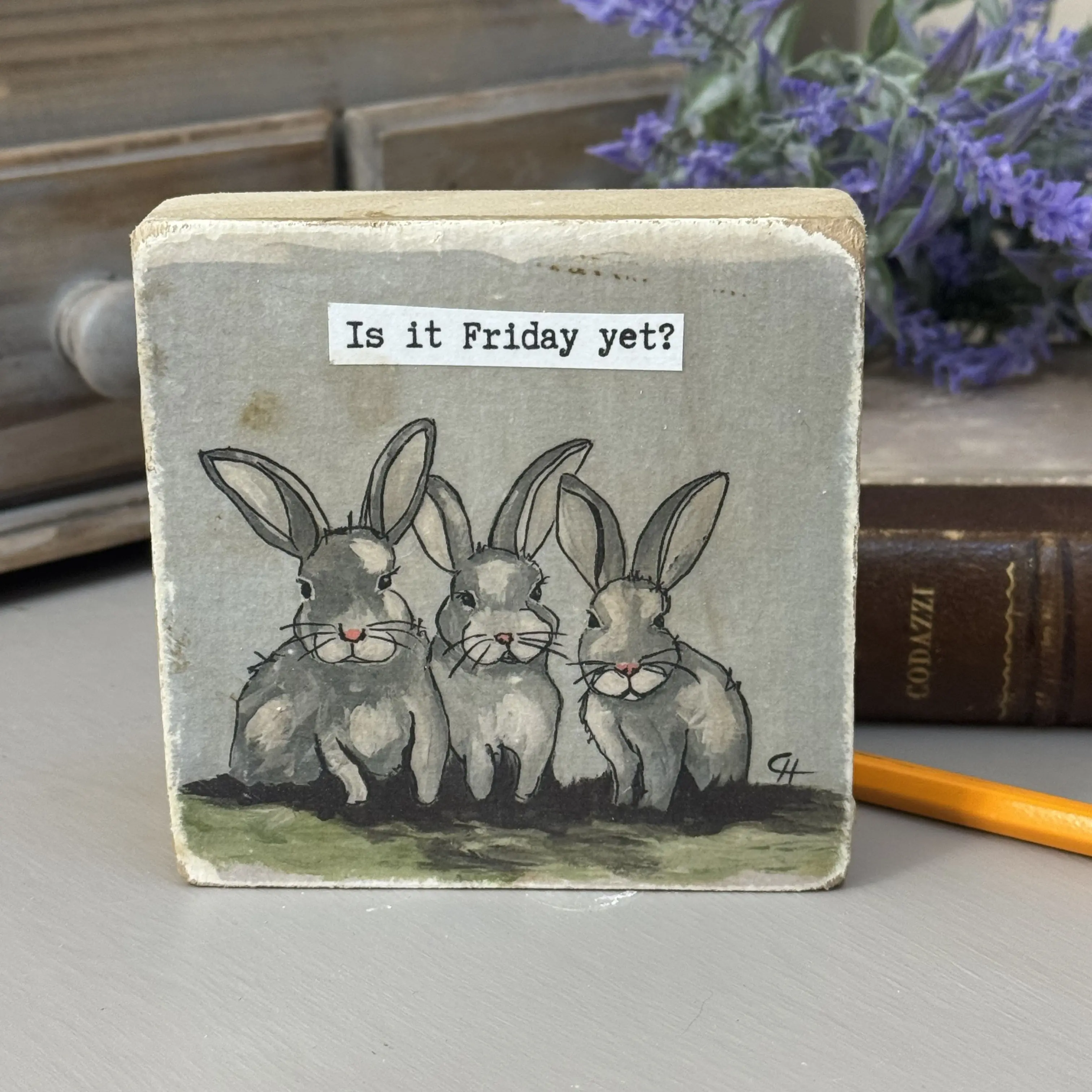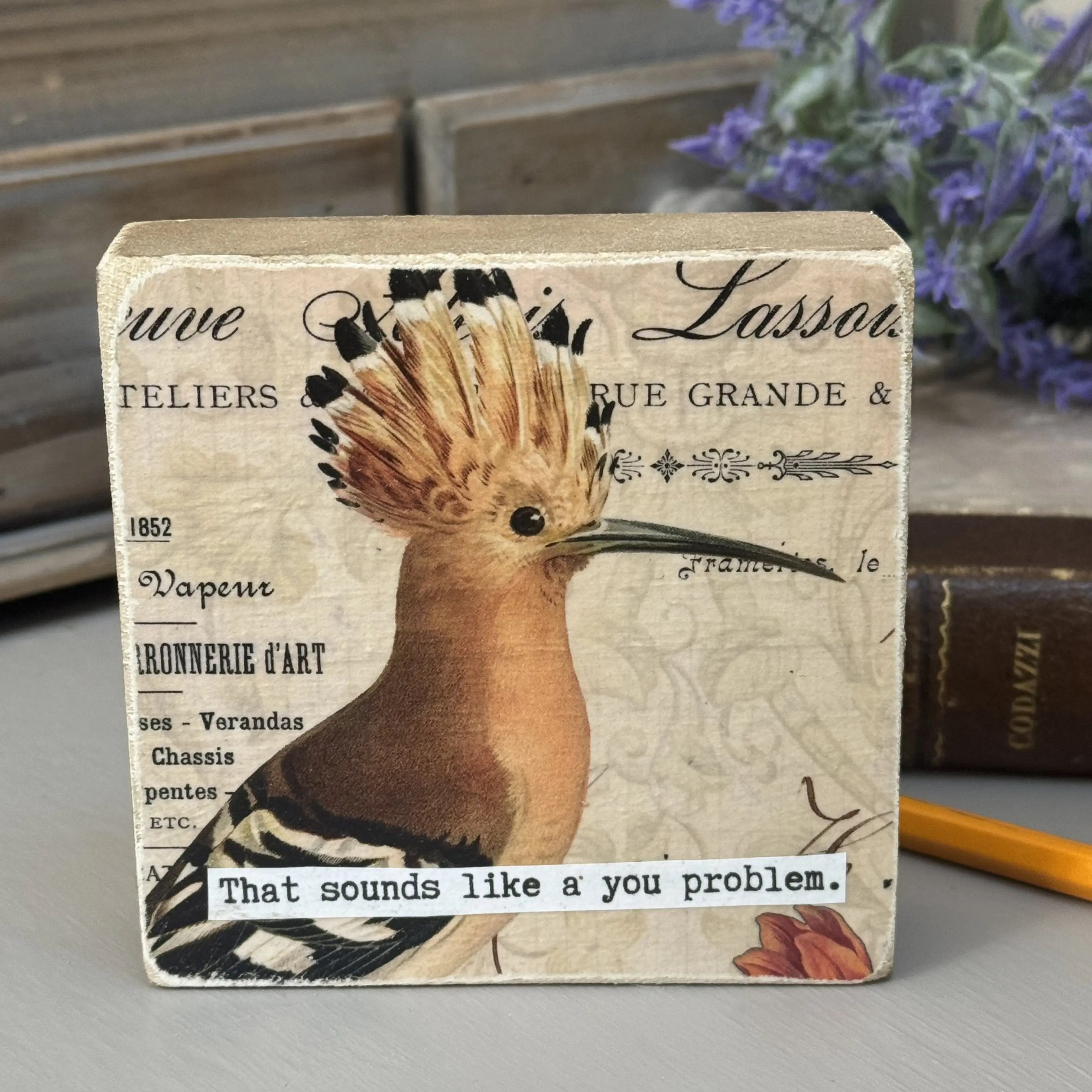 Add a little sass to your shelf with these handcrafted 4x4 wood shelf sitters from Sparks of Joy Studio.