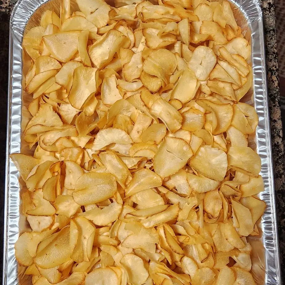 Guyanese Homemade cassava (also known as yuca) chips are a gourmet alternative to standard potato chips, offering a sharper, louder crunch and a unique, earthy flavor profile. Because they are made from a denser root vegetable, these chips provide a more substantial and satisfying bite.