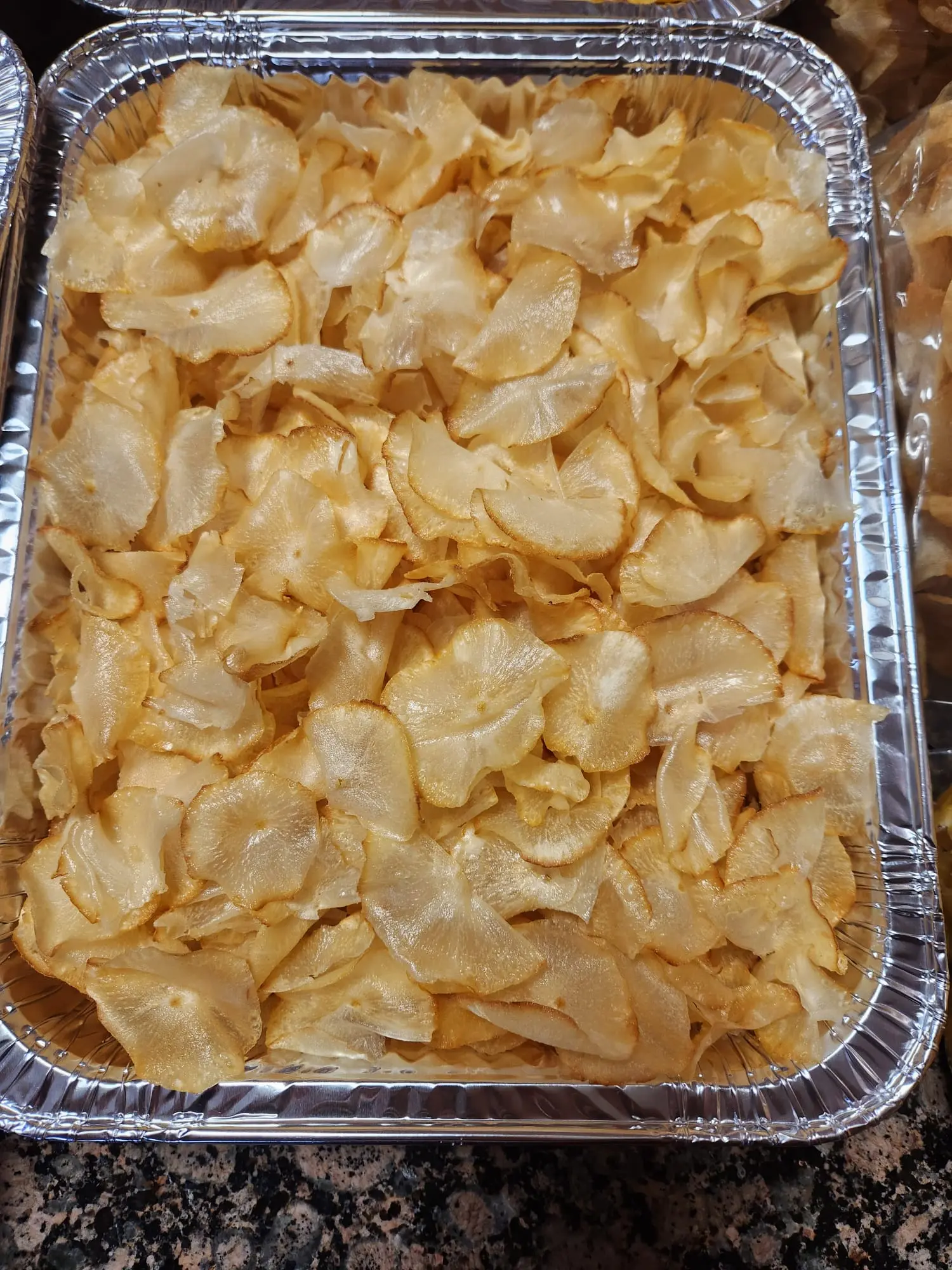 ·The Signature Crunch: Unlike potato chips that can be airy, cassava chips have a denser starch structure, resulting in a firmer, sturdier crunch that holds up better with Mango dips/Mango sour
