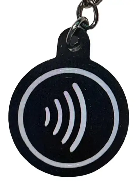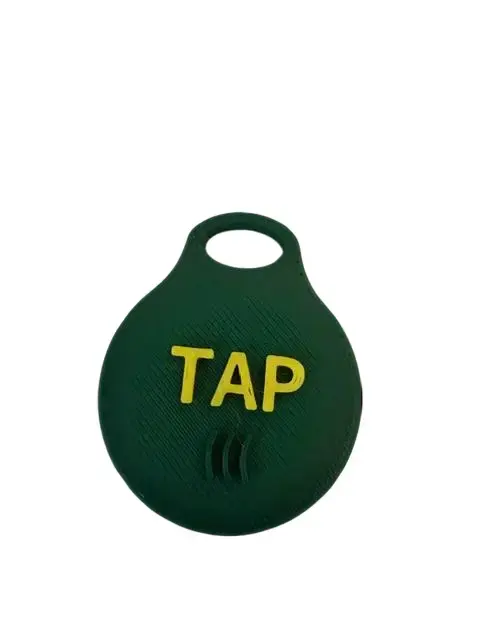 A sleek, minimal round keychain with built-in NFC technology. Just tap any smartphone to instantly share your website, social media, contact info, payment link — whatever you choose. No app needed. No QR code. Just tap.