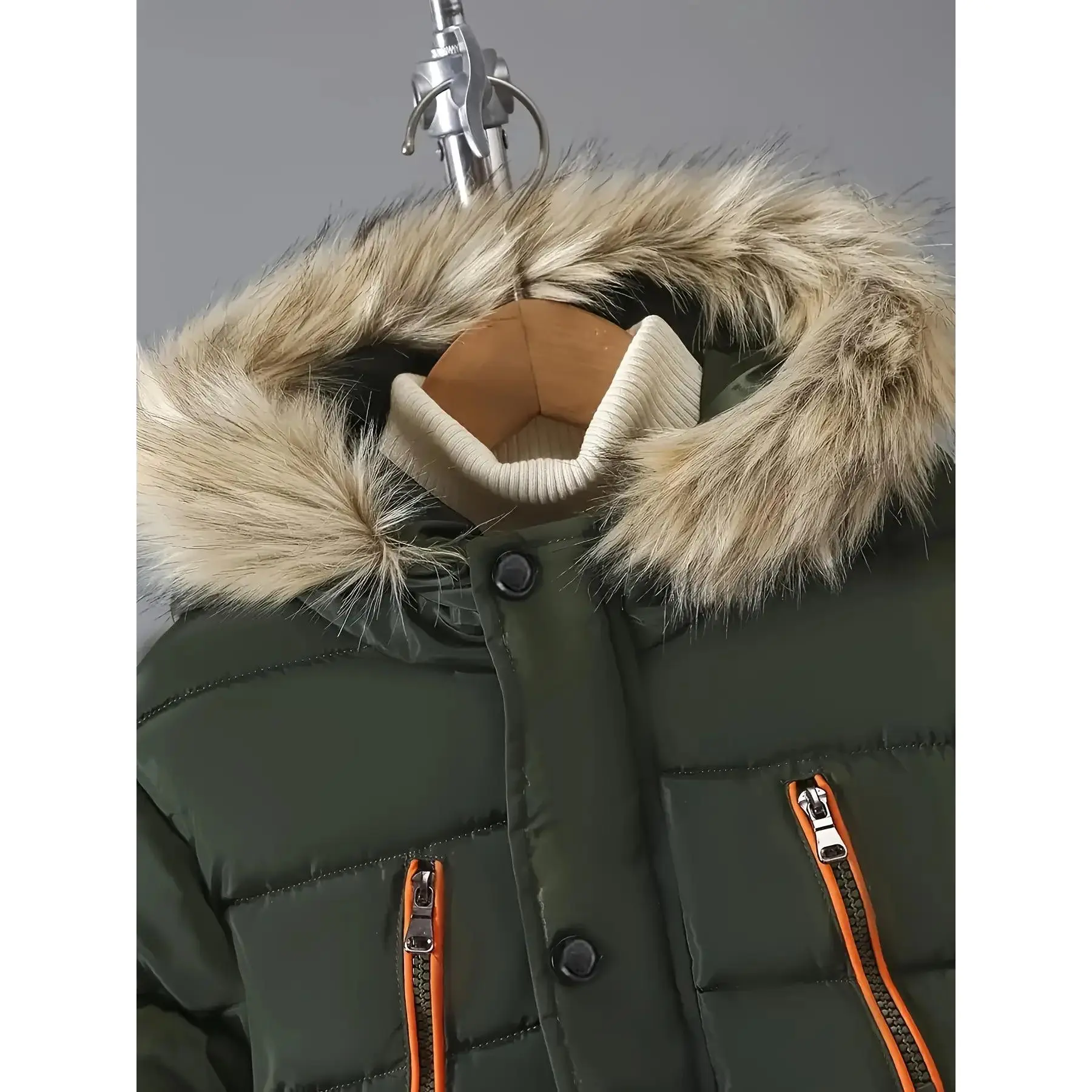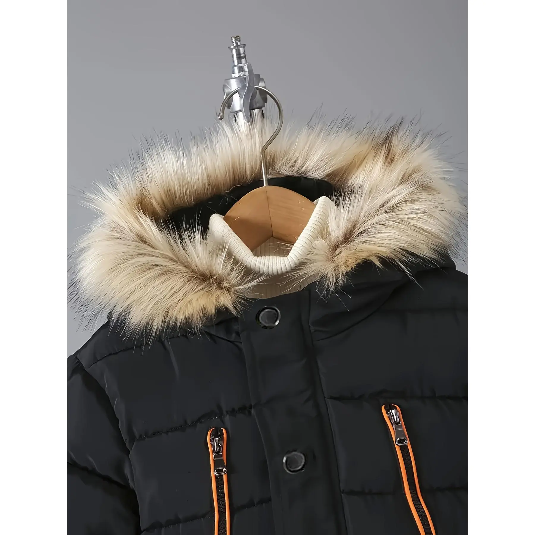 5. Boys' Winter Warm Hooded Jacket with Full-Zip Front, Elastic Cuffs & Pockets - Heavy-Duty Outerwear for Cold Weather, Casual Outdoor & Everyday Wear, Winter Jacket For Boys, Cold Weather Apparel, Stylish Winterwear, Durable Winterwear, Warm Coat
