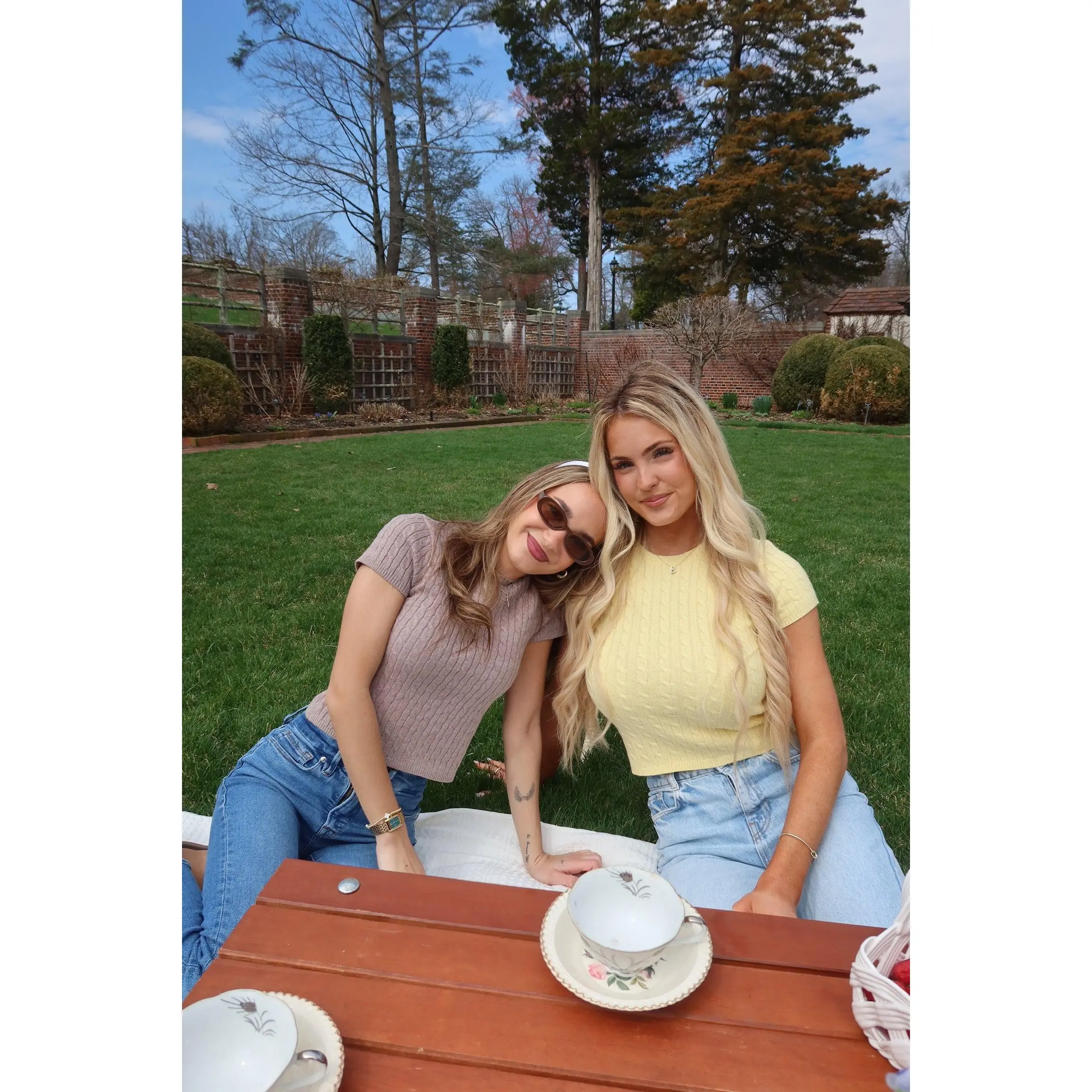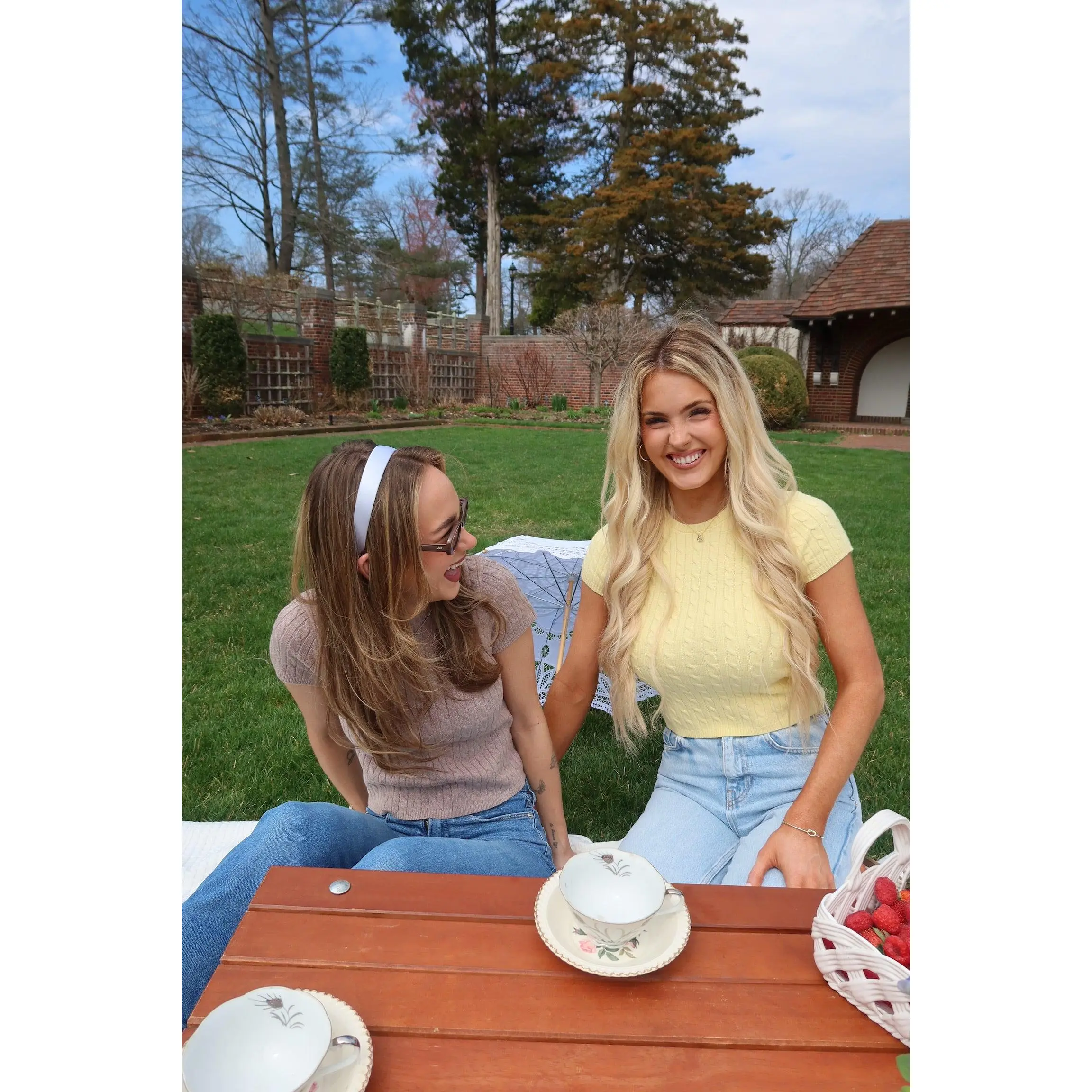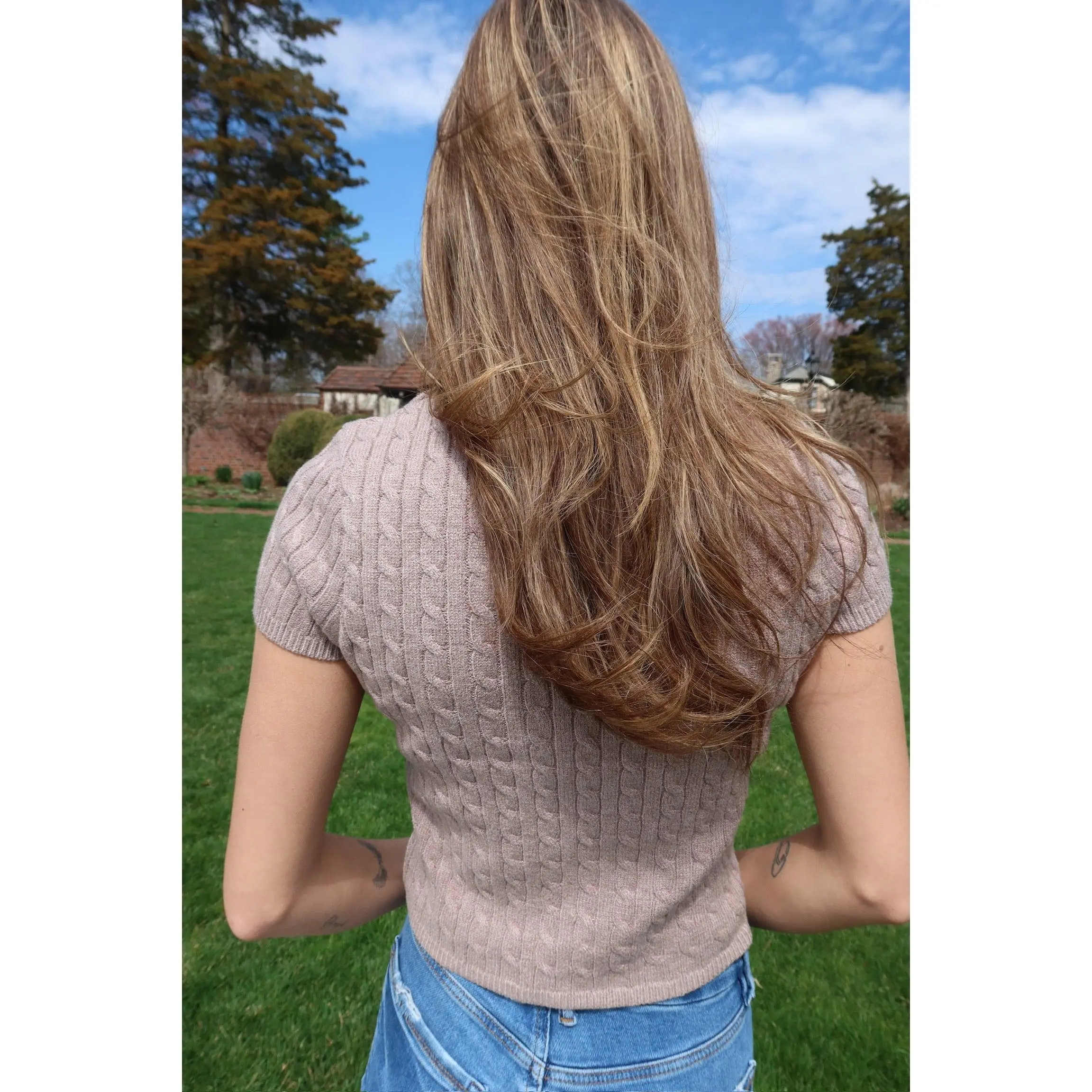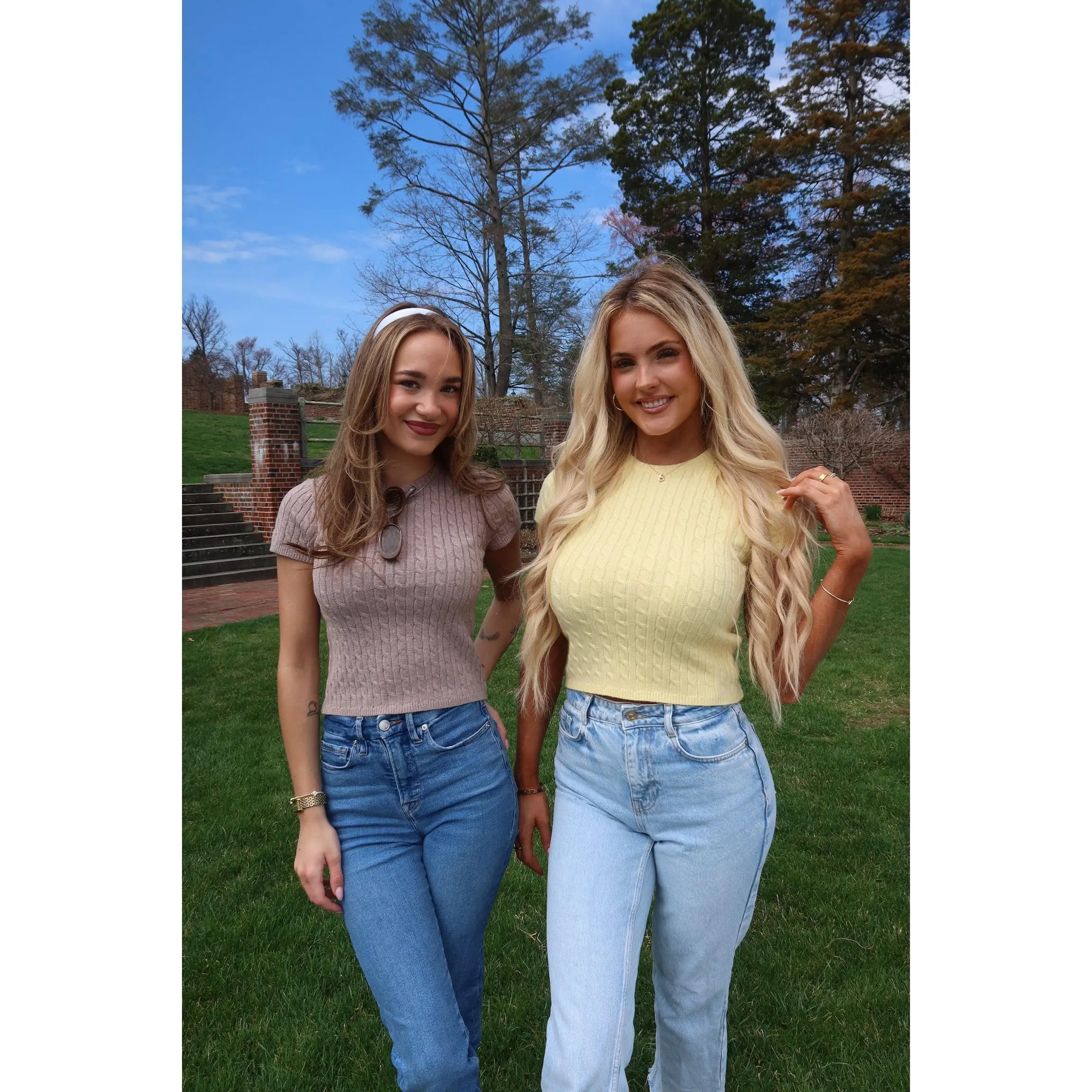 Elevate your everyday wardrobe with the Laureni Cable Knit Short Sleeve Top—a modern take on a timeless classic. Designed in a flattering baby tee silhouette, this slim-fit sweater features a high crew neckline for a clean, elevated finish. The subtle shoulder structure adds just the right amount of shape, while the textured cable knit pattern brings dimension and style.