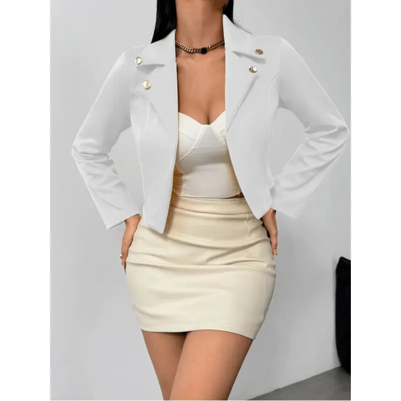 Women's Solid Color Turn-Down Collar Buttoned Long-Sleeve Short Cardigan, Spring Black