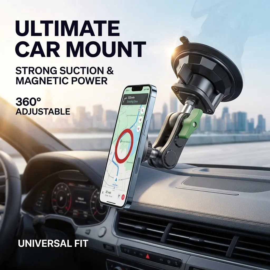 This magnetic car phone mount offers a strong suction force, ensuring your phone stays securely in place. With 360° adjustability, you can position your phone perfectly for any angle. One-hand operation makes it easy to use, enhancing convenience. Ideal for iPhone and Android devices, this mount is a universal solution for all cars.