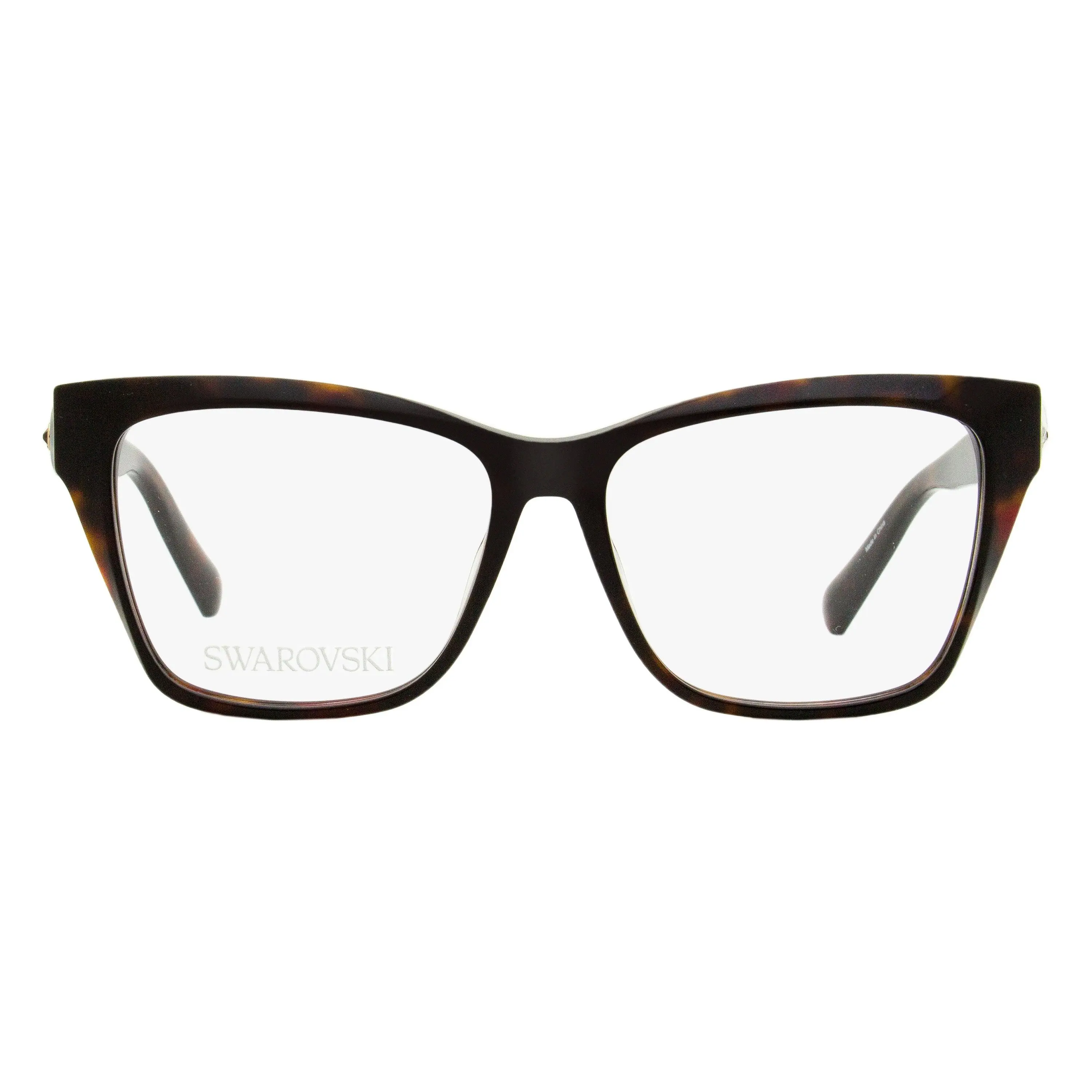 The Swarovski 5468 optical frames feature a modern square shape suitable for women. The acetate frame is studded with Swarovski crystals and laser etched gradient print along the temples. Swarovski Eyeglasses are stunning and opulent. Exquisite detail has made Swarovski Eyeglasses exceptionally desirable and the absolute pinnacle of Luxury Eyewear. Please note these eyeglasses are provided with Demo Lenses in order to demonstrate the final appearance of your frames. Please visit your local Optometrist or Optician to replace with optical quality lenses.