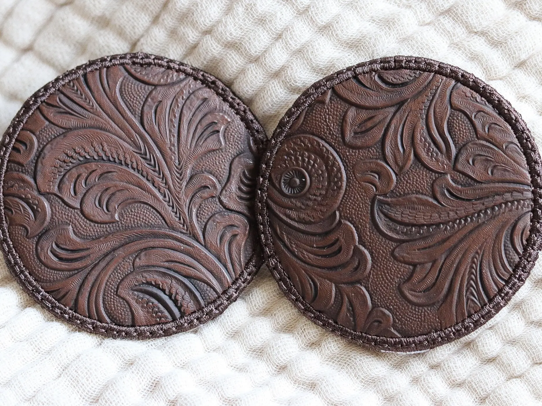Comes with two 2.90" x 2.90" car coasters. Tooled faux leather. Makes the perfect car accessory and gift!
