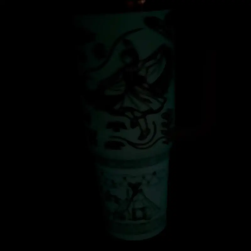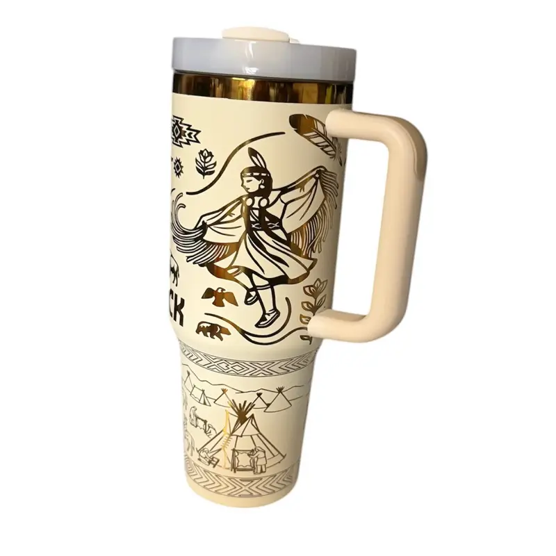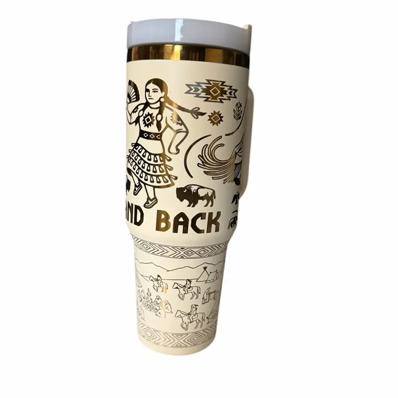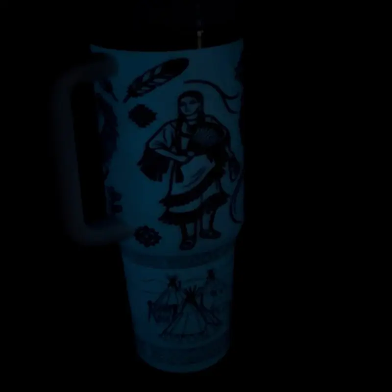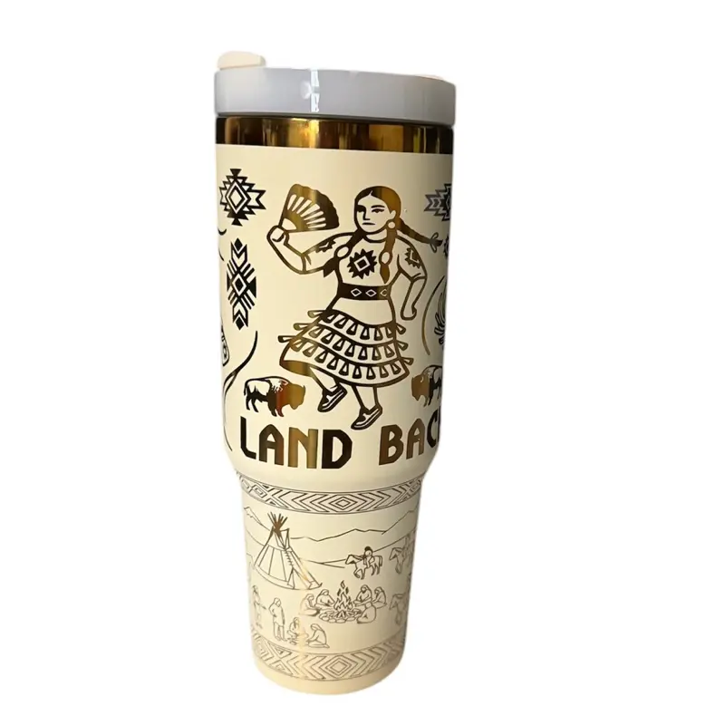 Land Back Glow in the Dark Tumblers with Native American Design and Gold Trim Water Bottles Washable