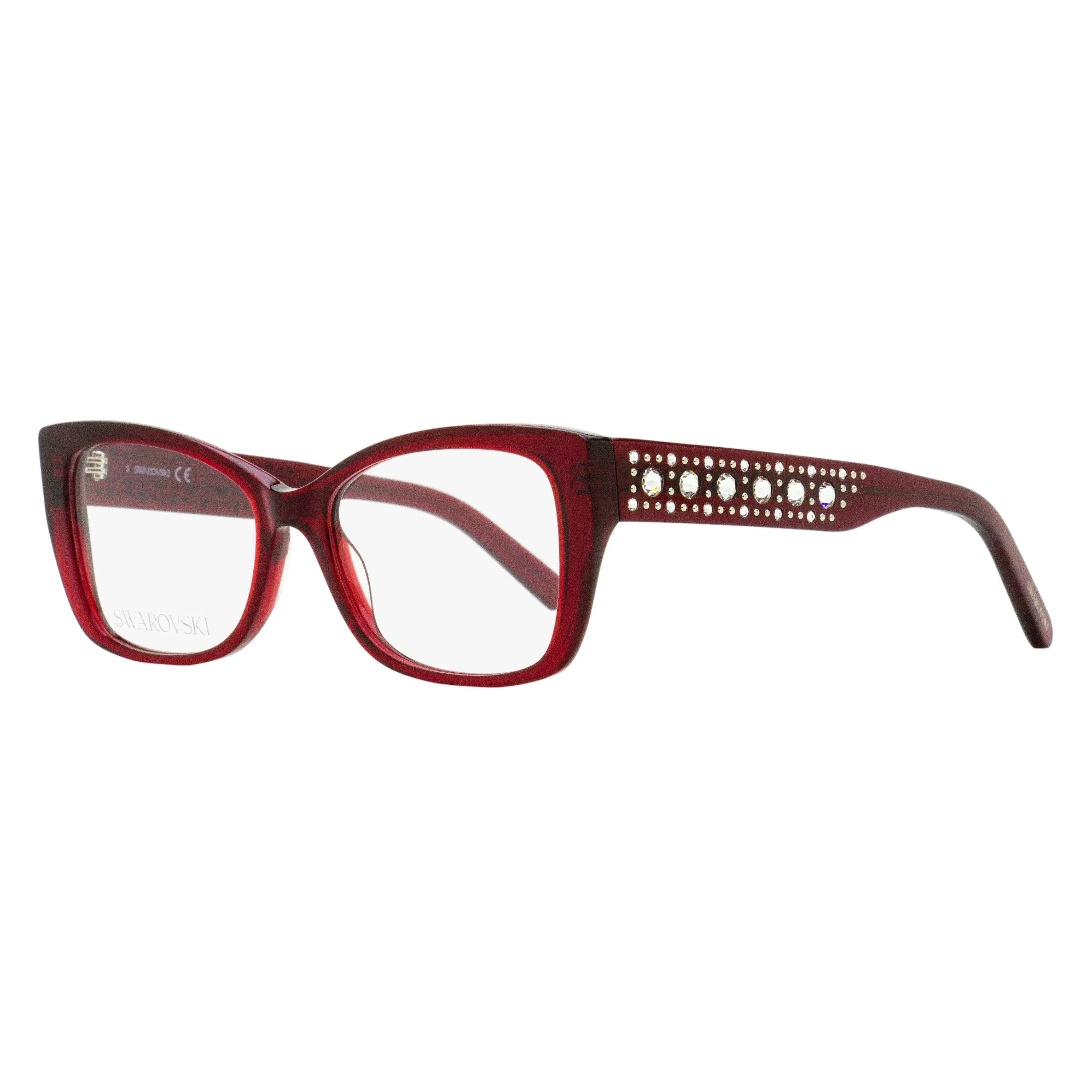 The Swarovski 5452 optical frames a tapered rectangular lens shape with a butterfly profile designed for women. The acetate temples are highlighted by crystals laid out on a grid pattern, creating a radiant, jewel-like pattern that highlights the brand’s signature glamorous style. Swarovski Eyeglasses are stunning and opulent. Swarovski eyewear blends timeless design with the brand’s iconic crystal artistry, creating frames that feel both luxurious and elegant. Each piece offers distinctive shimmering details for those who appreciate sophisticated style. Please note these eyeglasses are provided with Demo Lenses in order to demonstrate the final appearance of your frames. Please visit your local Optometrist or Optician to replace with optical quality lenses.