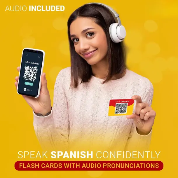Includes a built-in QR code linking to audio files plus an IPA pronunciation guide for mastering accurate Spanish pronunciation and speaking naturally.