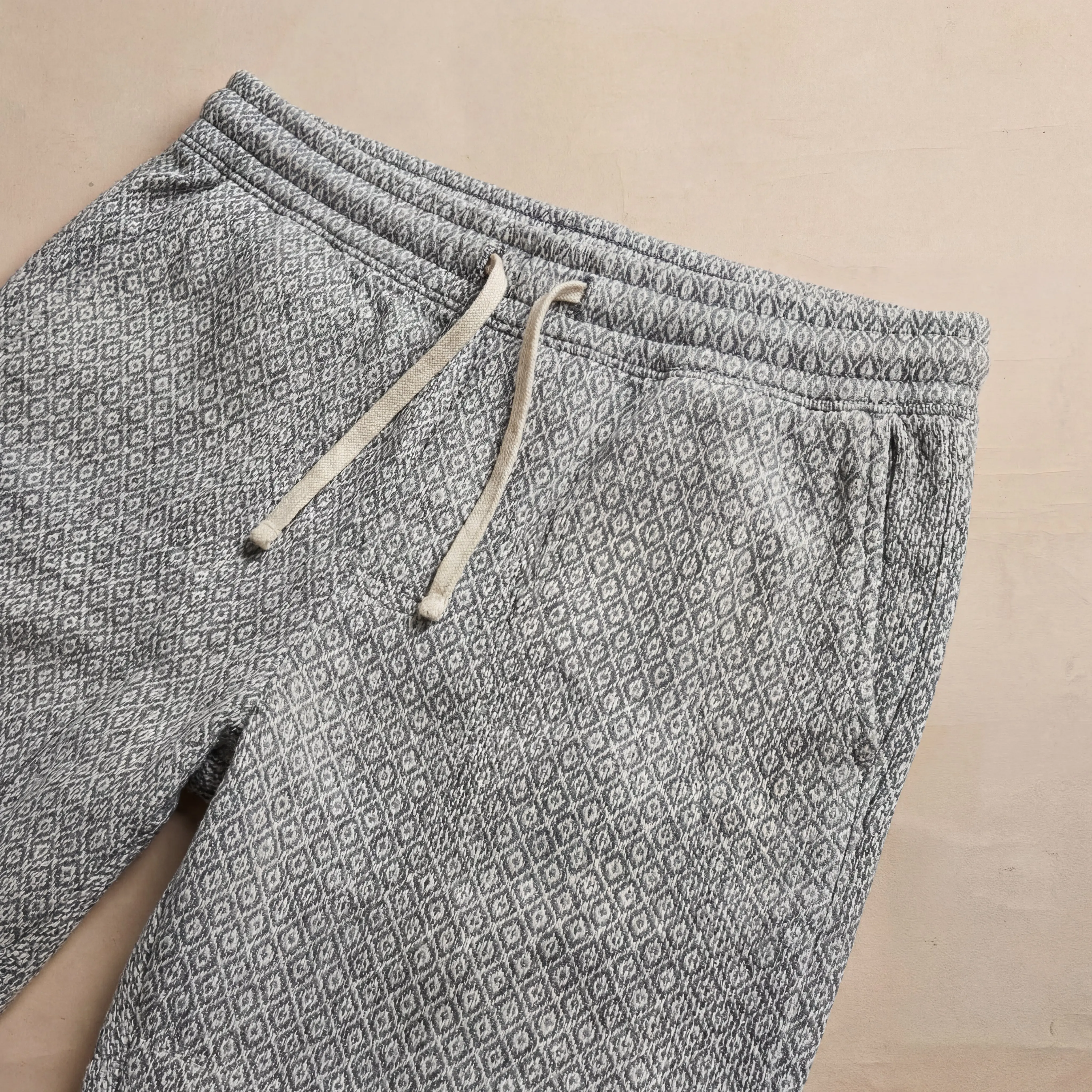 ·Detail: 6" inseam, stretch waistband, adjustable drawstring, side slash pockets, part of set