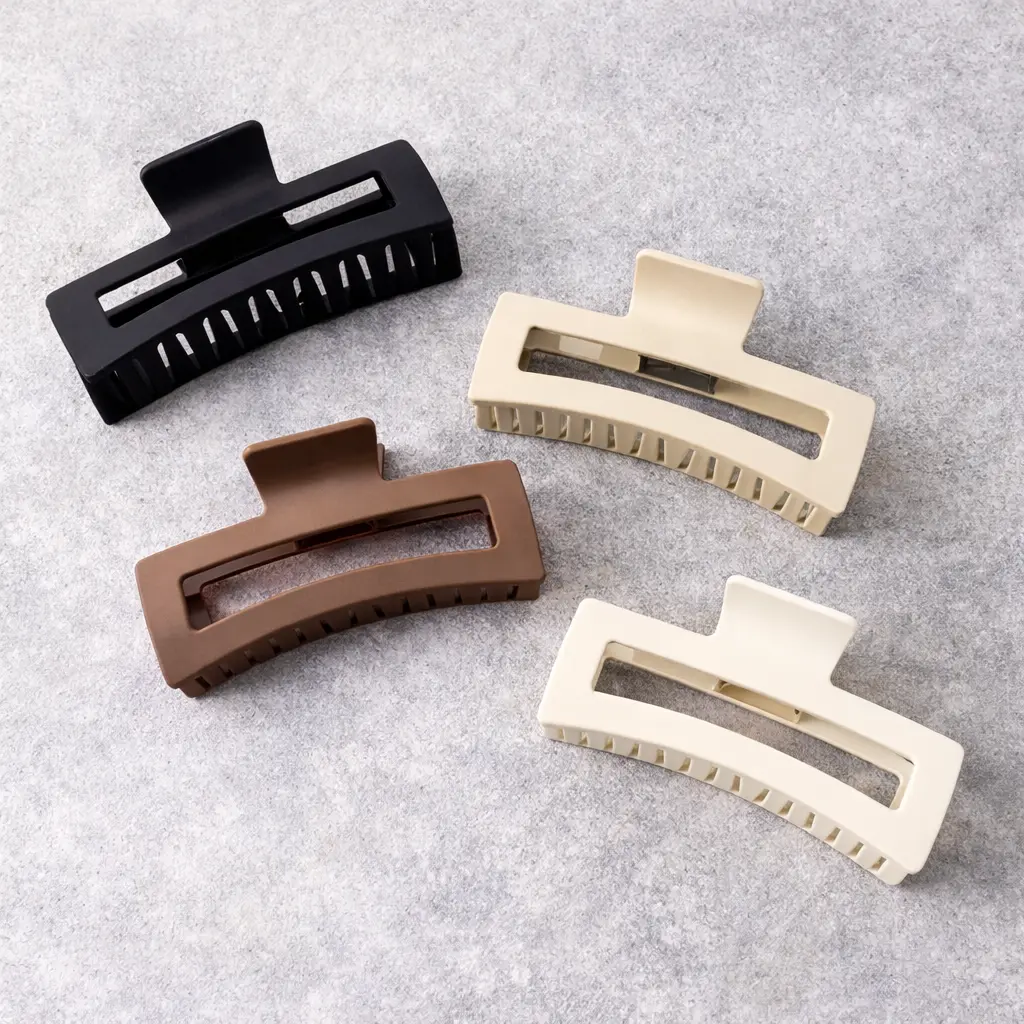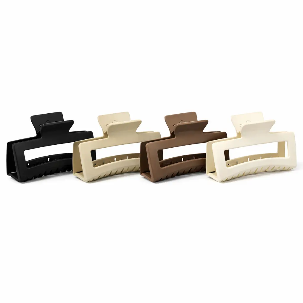 Description:This 4PCS matte rectangle hair claw clip set has a simple and clean design. It is easy to use and helps hold hair in place for daily styling. The set includes black, brown, beige, and white colors, making it a good choice for different outfits and hair styles.