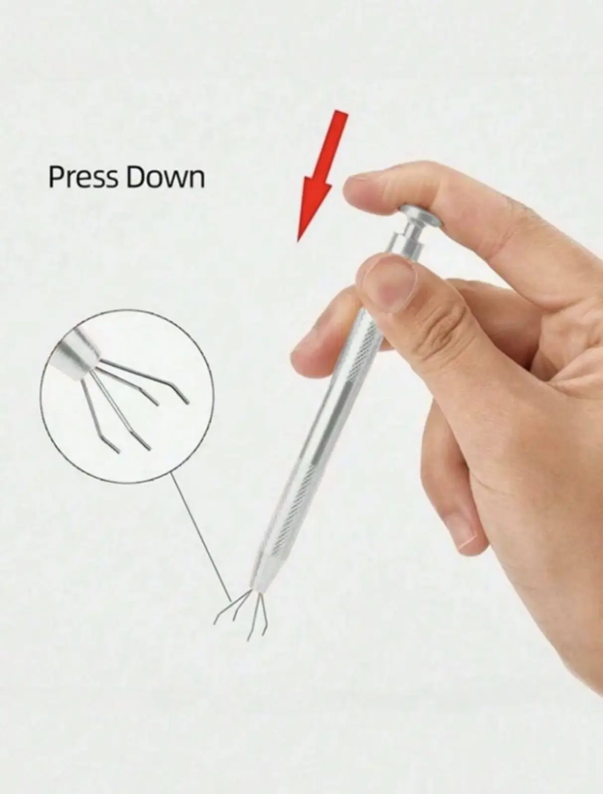 Made of durable metal material, this tool is lightweight, reusable, and easy to handle. The claw-style tip helps grip small items securely, making it practical for both personal and professional use.