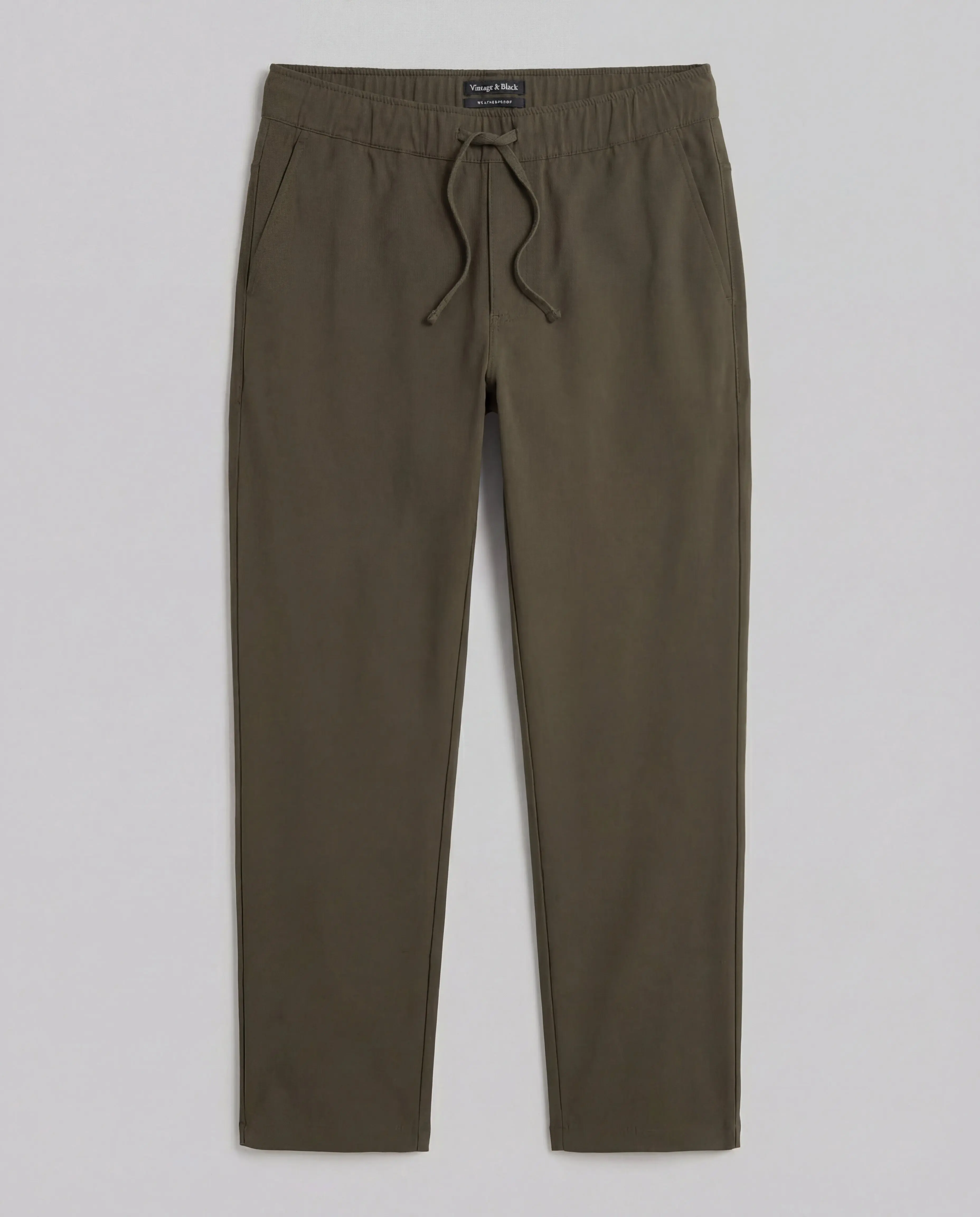 Designed in a smooth stretch blend, the Tech Jogger delivers a clean, modern silhouette with all-day flexibility. The elastic waistband with drawstring keeps the fit adjustable, while the tailored leg maintains a refined profile.