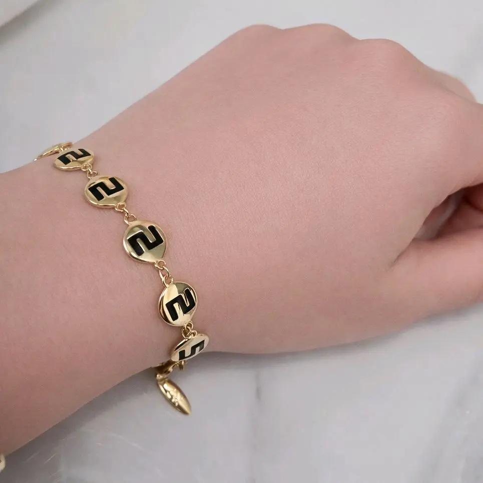 Beautiful 14K gold plated bracelet featuring delicate small charm discs connected with round links, creating a modern and elegant coin-style design