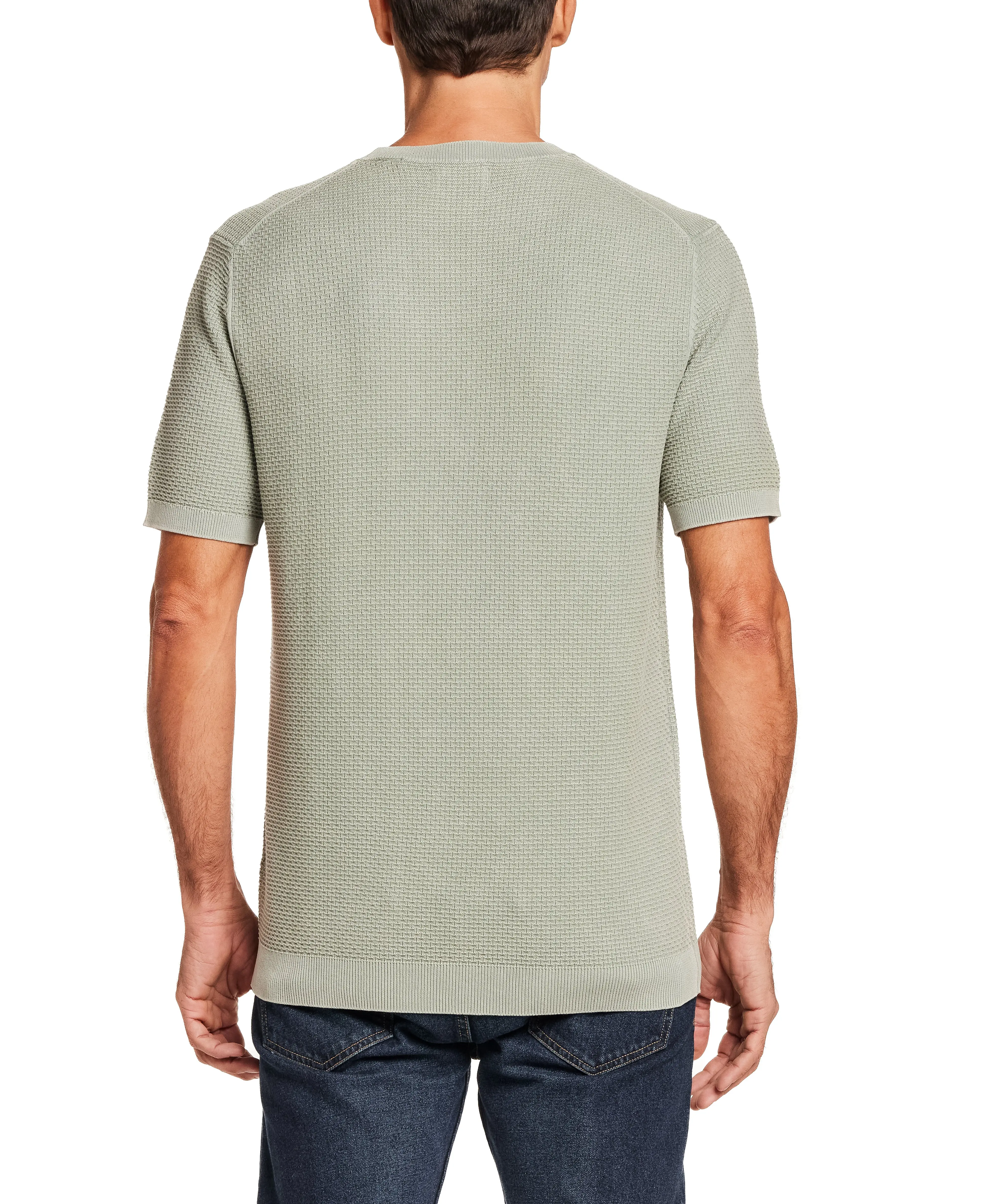 A short-sleeve crewneck sweater with a subtle mini brick knit that adds texture without calling too much attention to itself. Made from breathable cotton with a comfortable hand, it’s an easy upgrade from a standard tee and works just as well on its own as it does layered under a jacket.