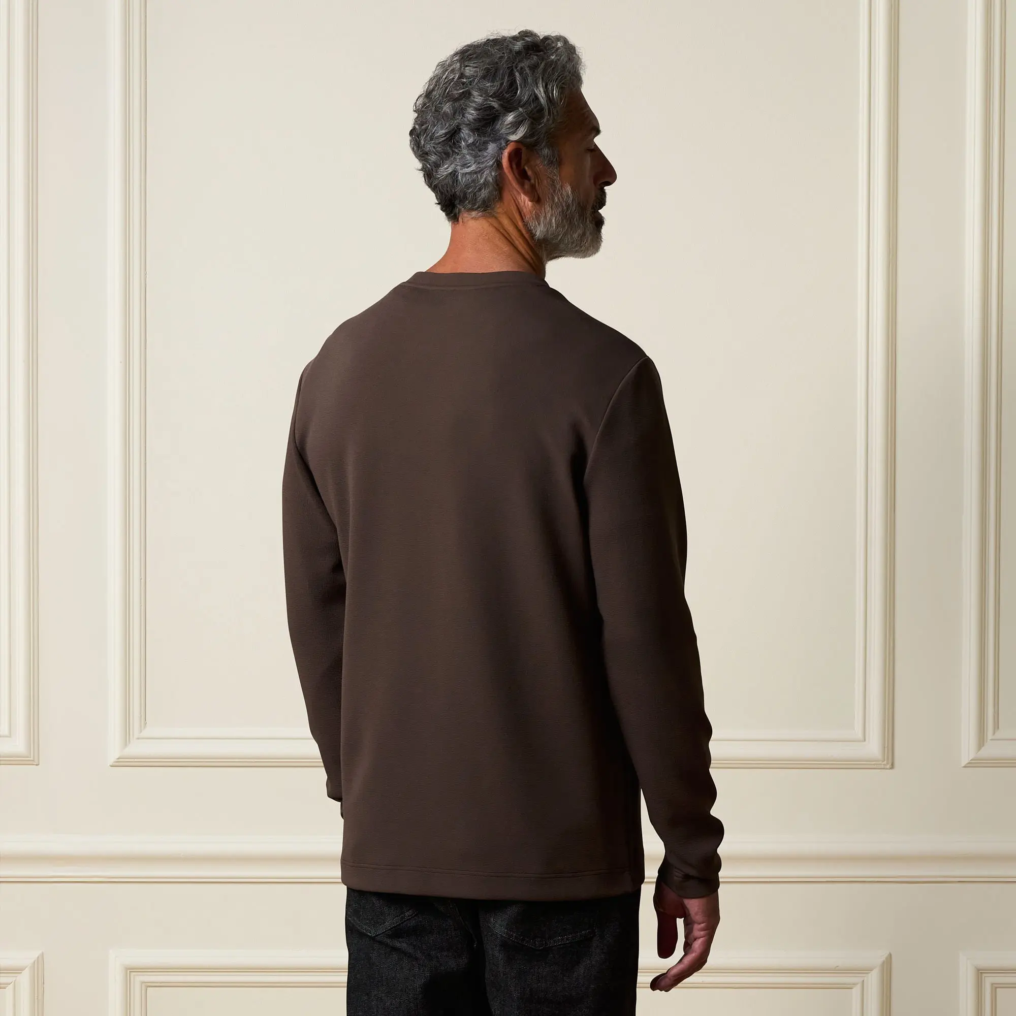 Long sleeve crew neck made from soft, textured scuba knit fabric. Designed for everyday comfort with a refined finish that elevates any casual look.