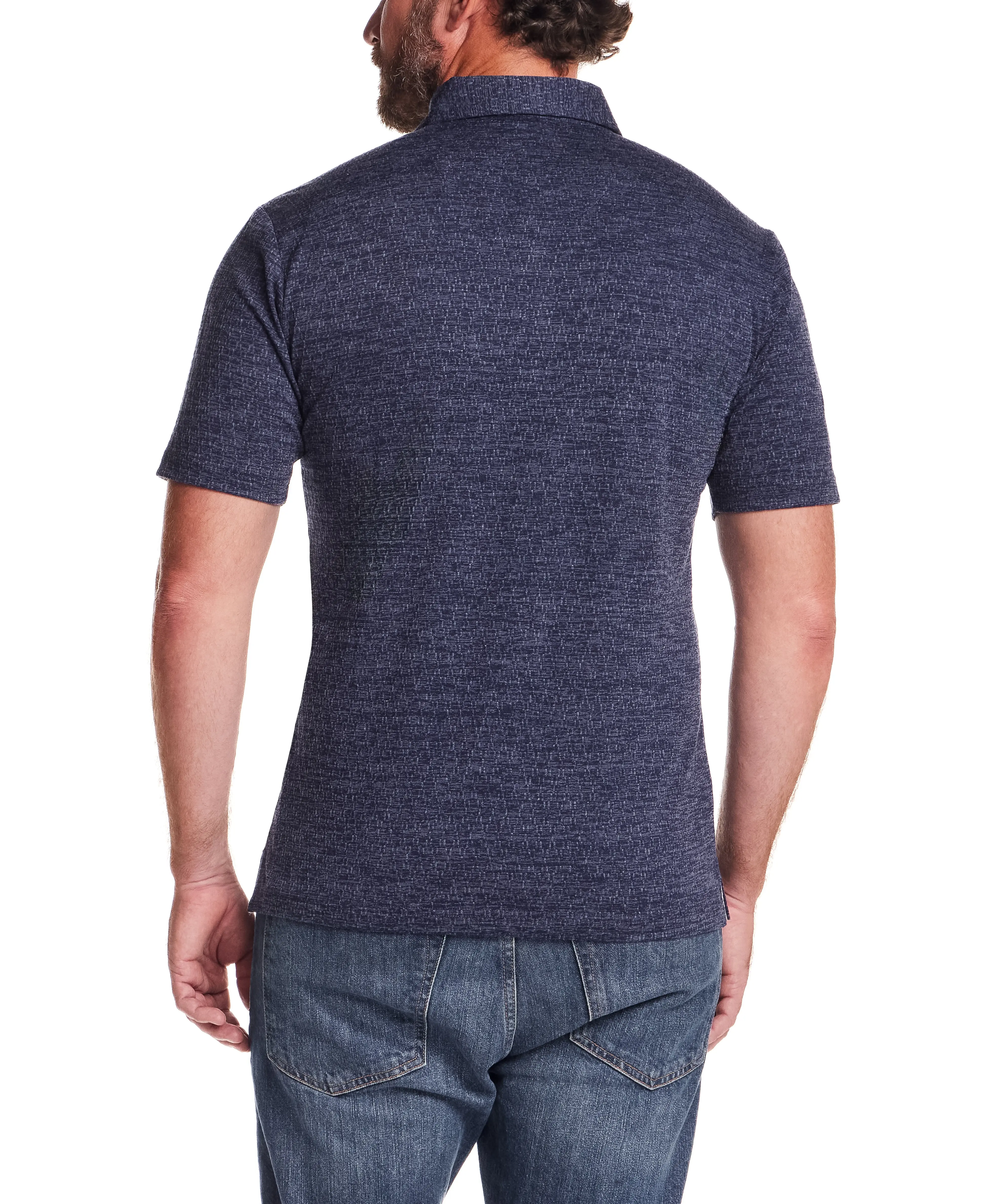 A clean, everyday polo finished with a subtle diamond texture for added depth. Made from a soft stretch blend, it offers comfort, flexibility, and a polished look that works just as well with denim as it does with chinos.
