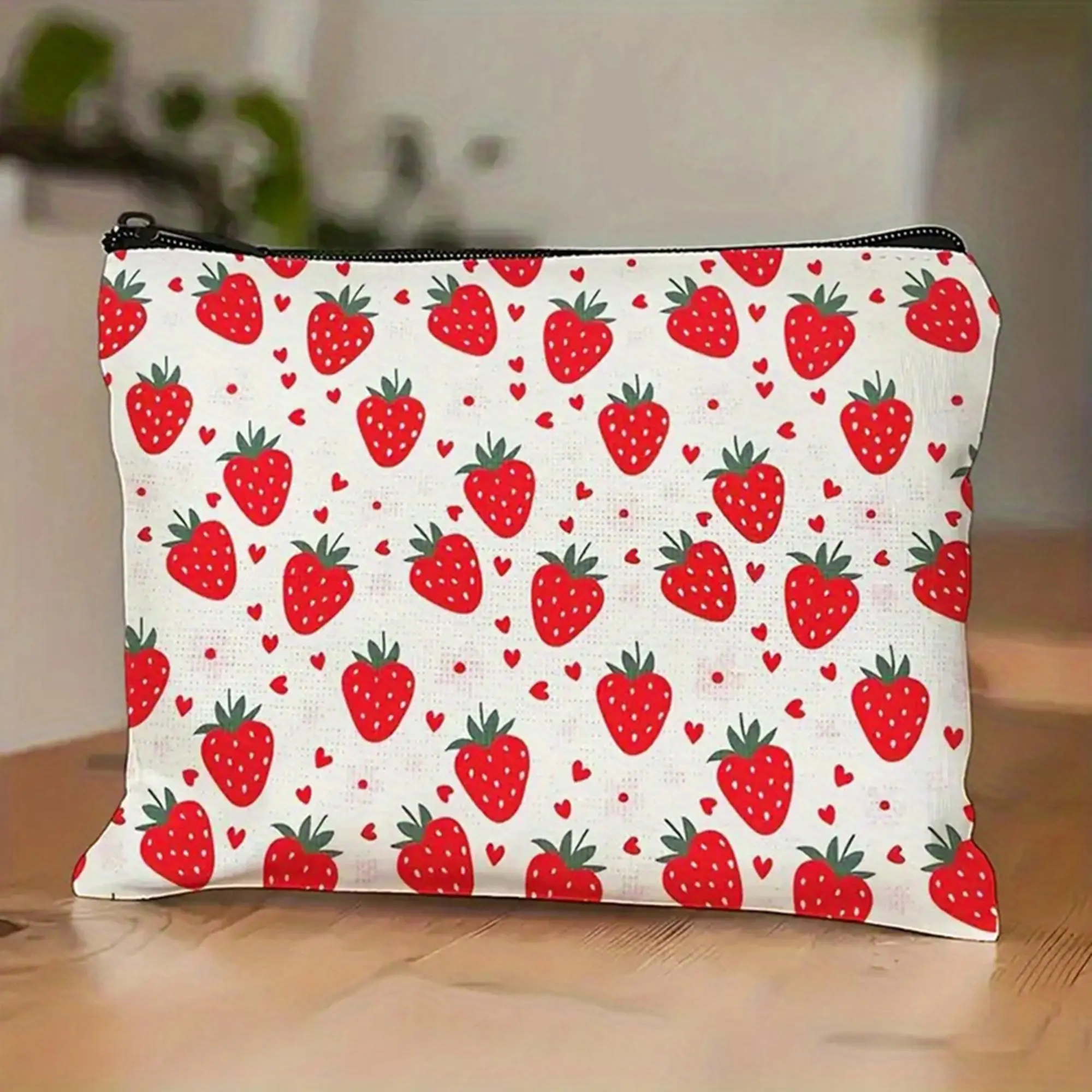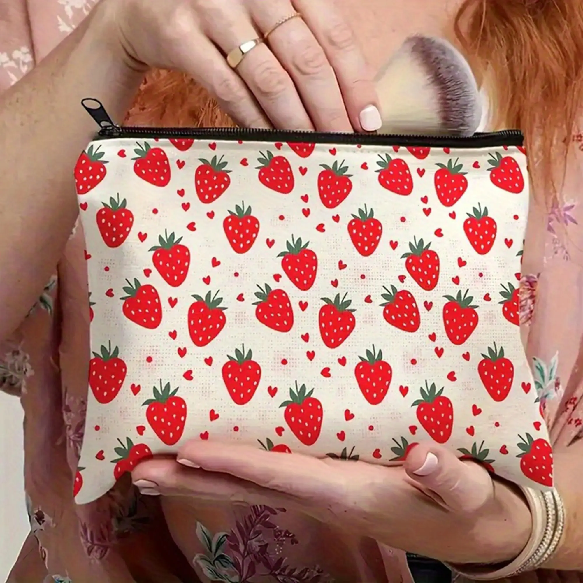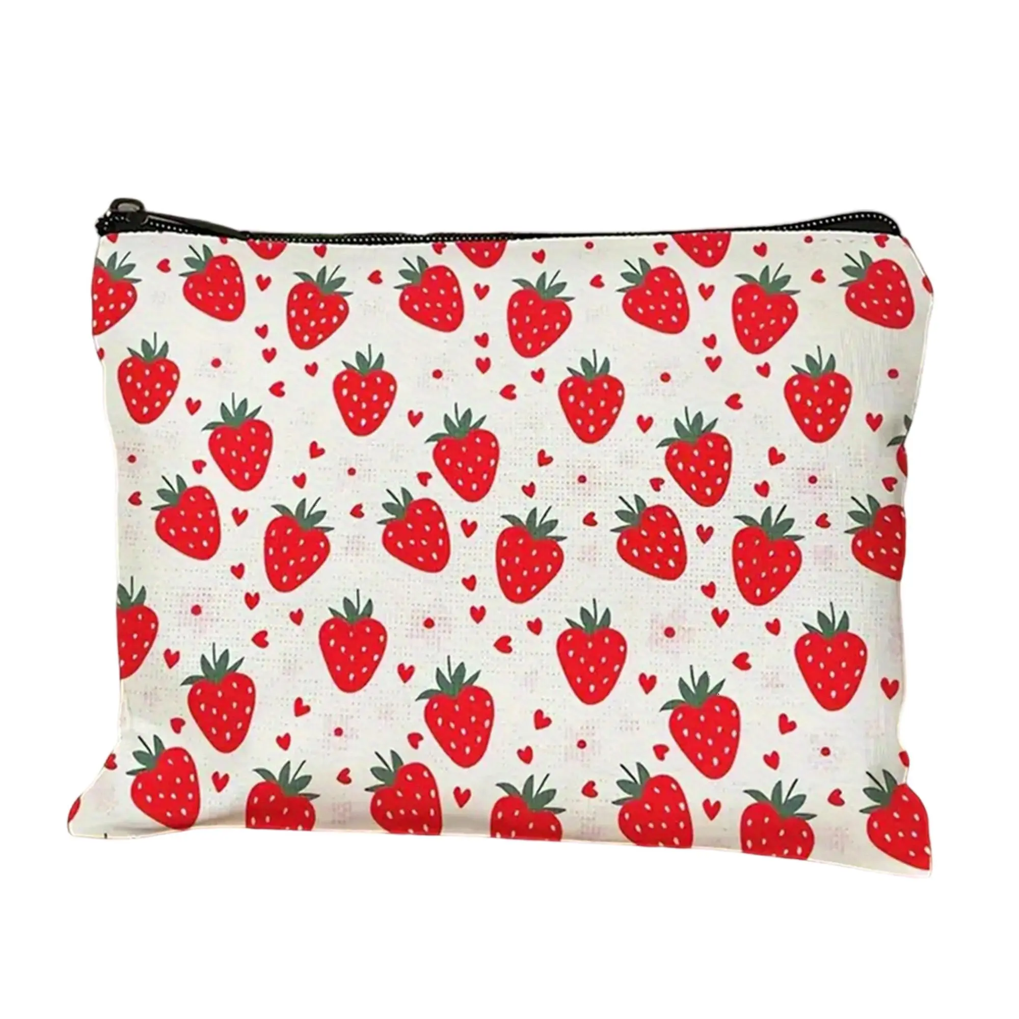 Strawberry Print Makeup Bag Cosmetic Bag for Women Girl with Zipper Large Capacity Travel Toiletry Bag Organizer Cute Fruit