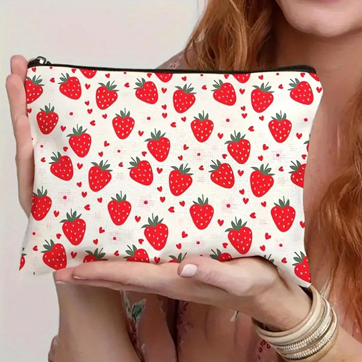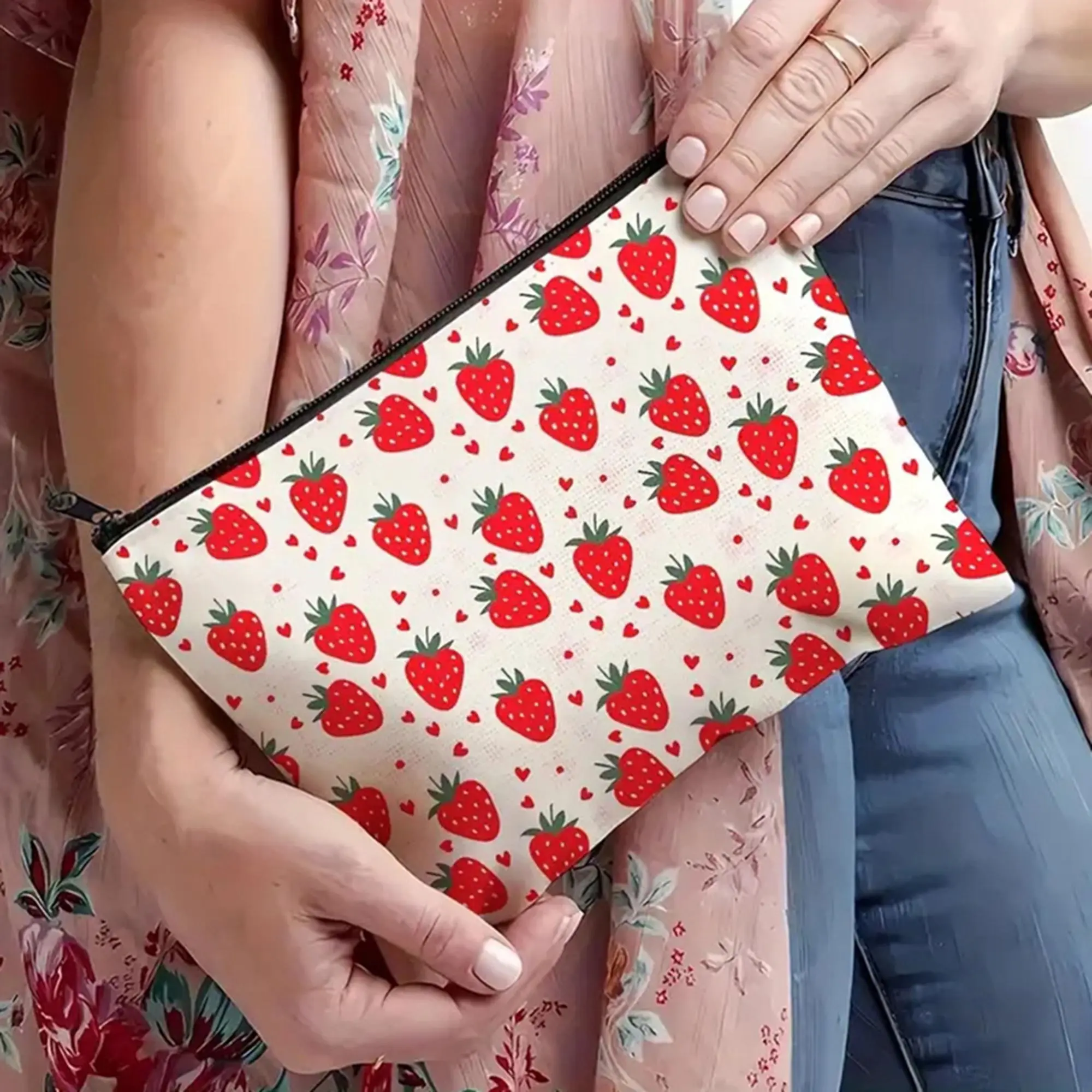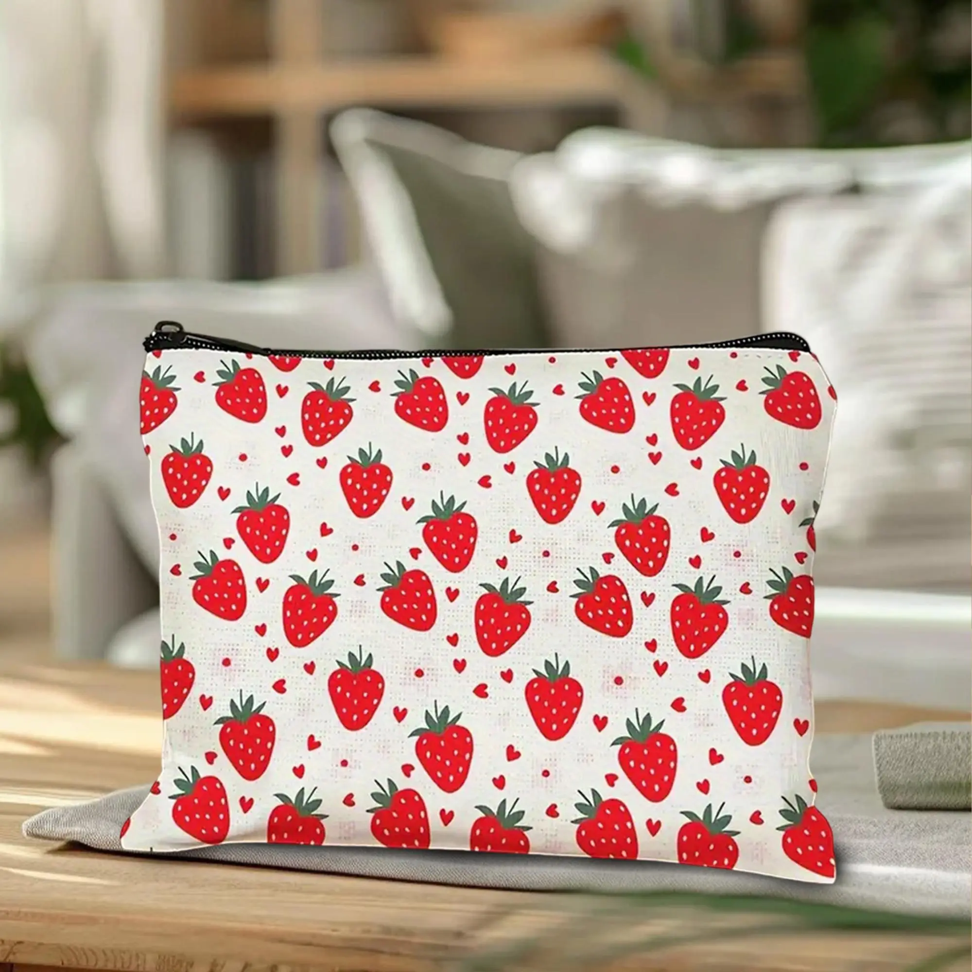 Strawberry Print Makeup Bag Cosmetic Bag for Women Girl with Zipper Large Capacity Travel Toiletry Bag Organizer Cute Fruit