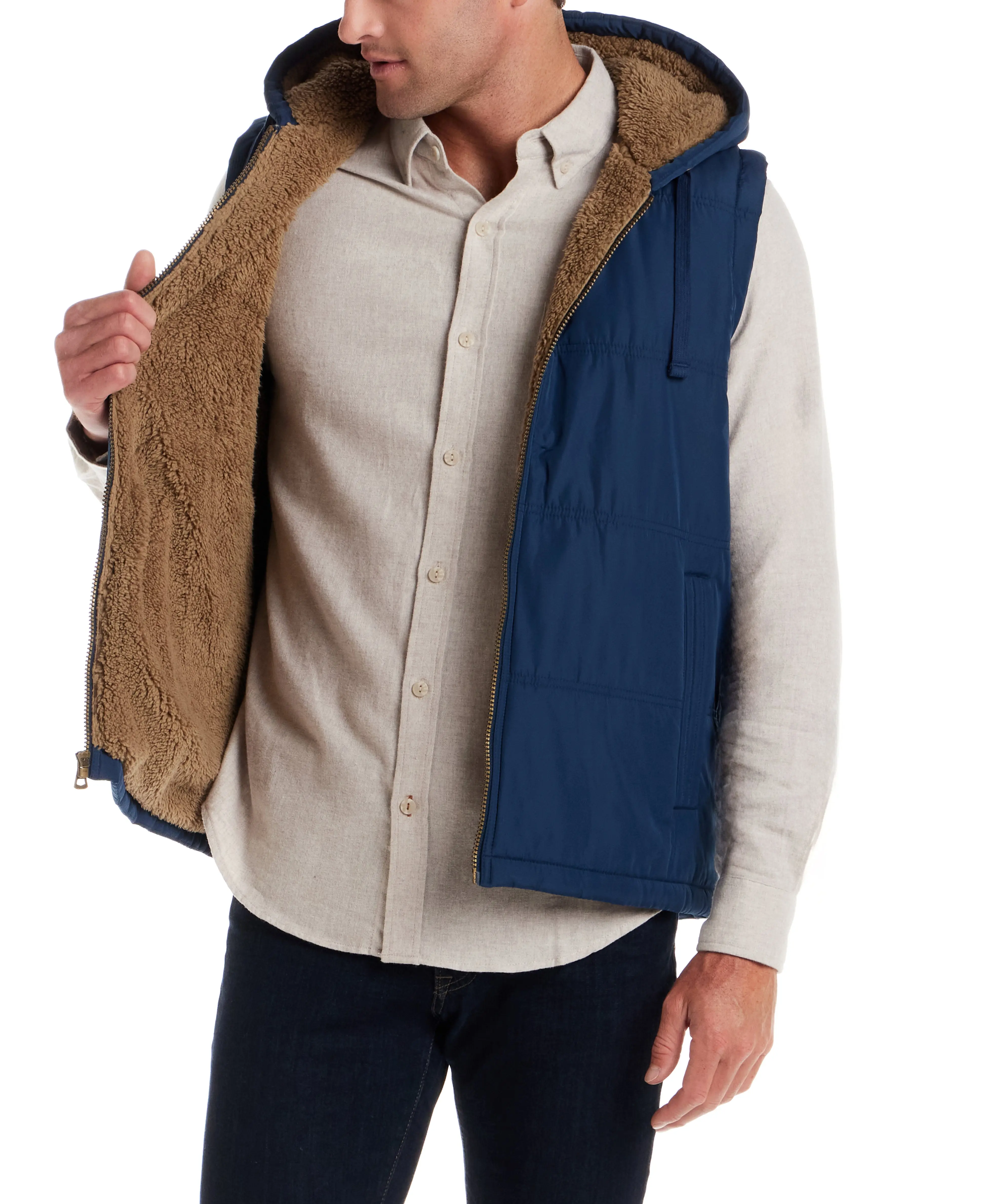 A casual essential built for layering, this hooded vest combines rugged function with everyday ease. The soft sherpa lining delivers warmth, while the matte shell and relaxed fit make it a versatile pick for cooler days.