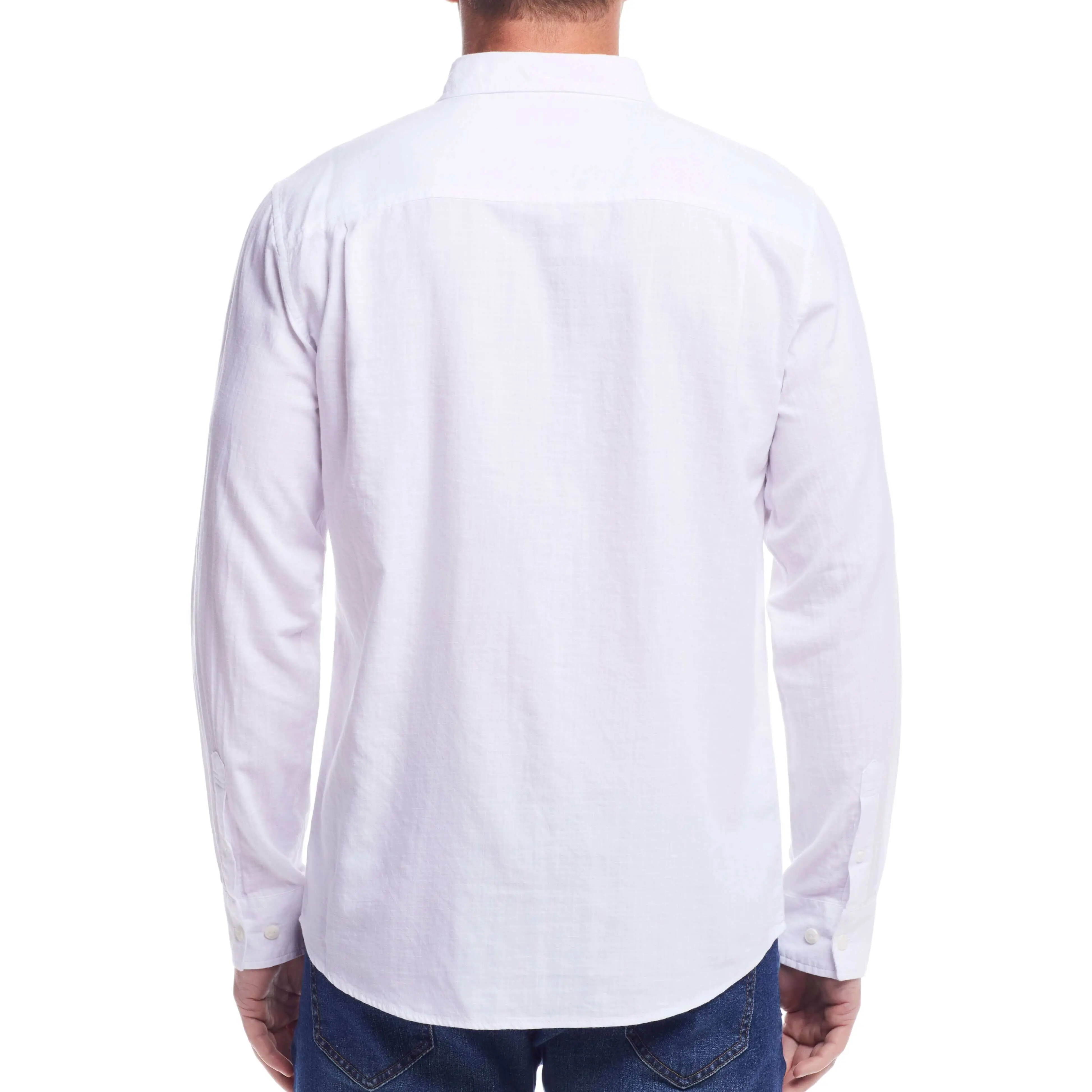 Long Sleeve Solid Cotton Twill Shirt In White