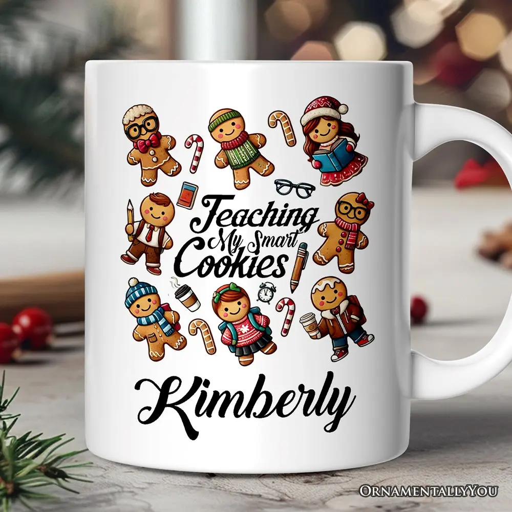 Gingerbread Teacher Personalized Mug, Teaching My Smart Cookies Gift with Custom Name