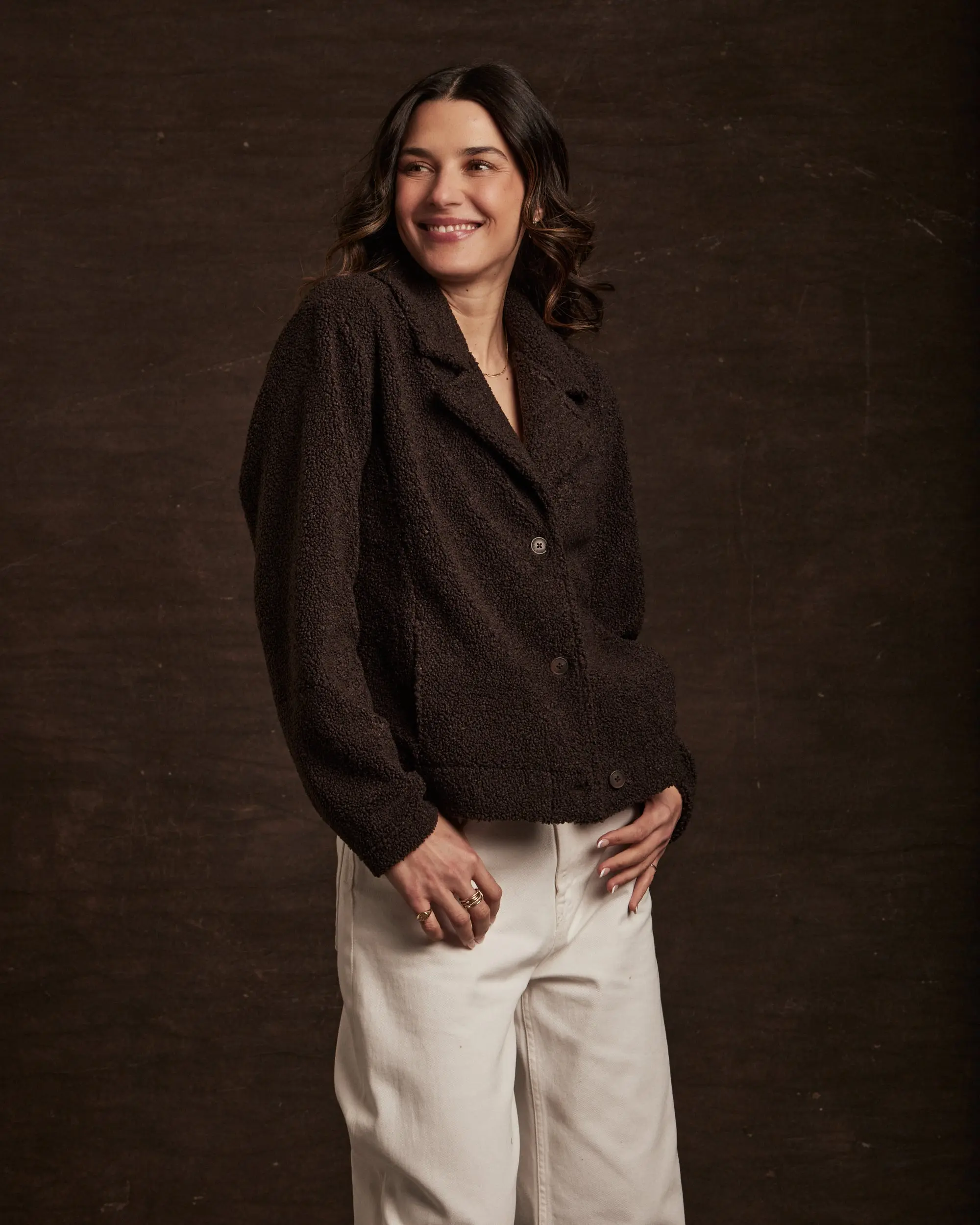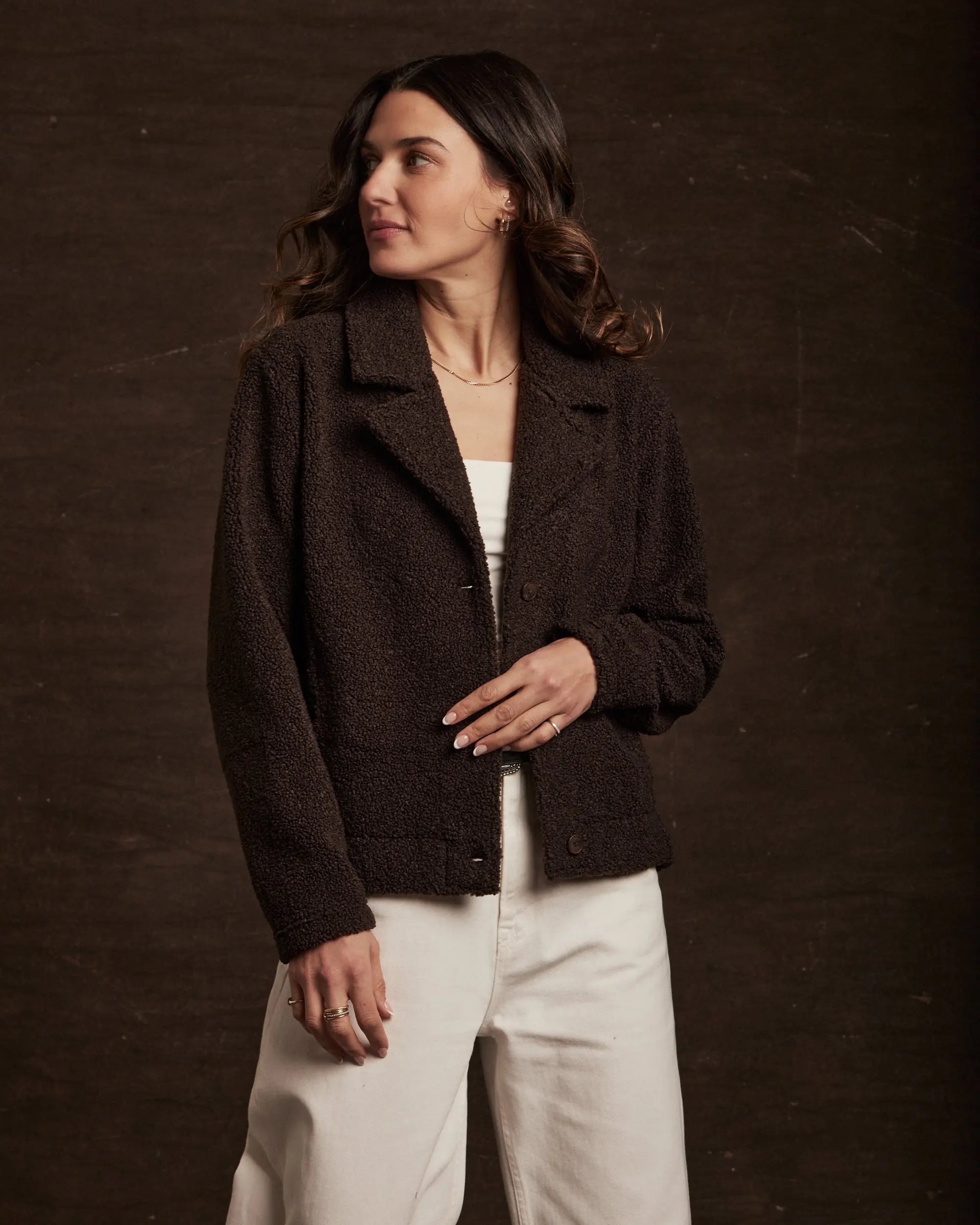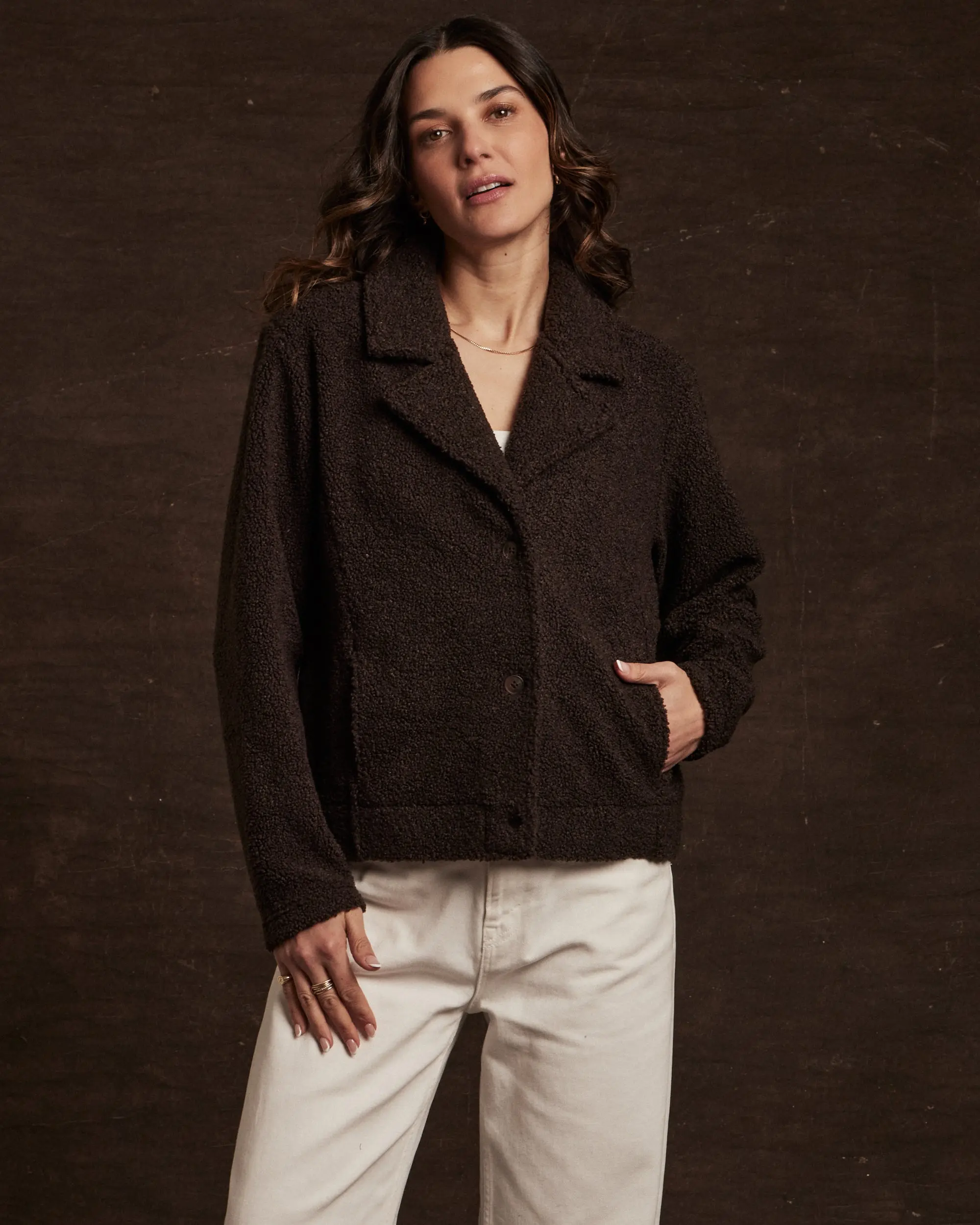 A plush sherpa fleece jacket with a soft, teddy-textured feel and an easy, relaxed fit. Designed for cozy comfort and everyday versatility, it’s perfect for layering over tees and sweaters when the weather cools.