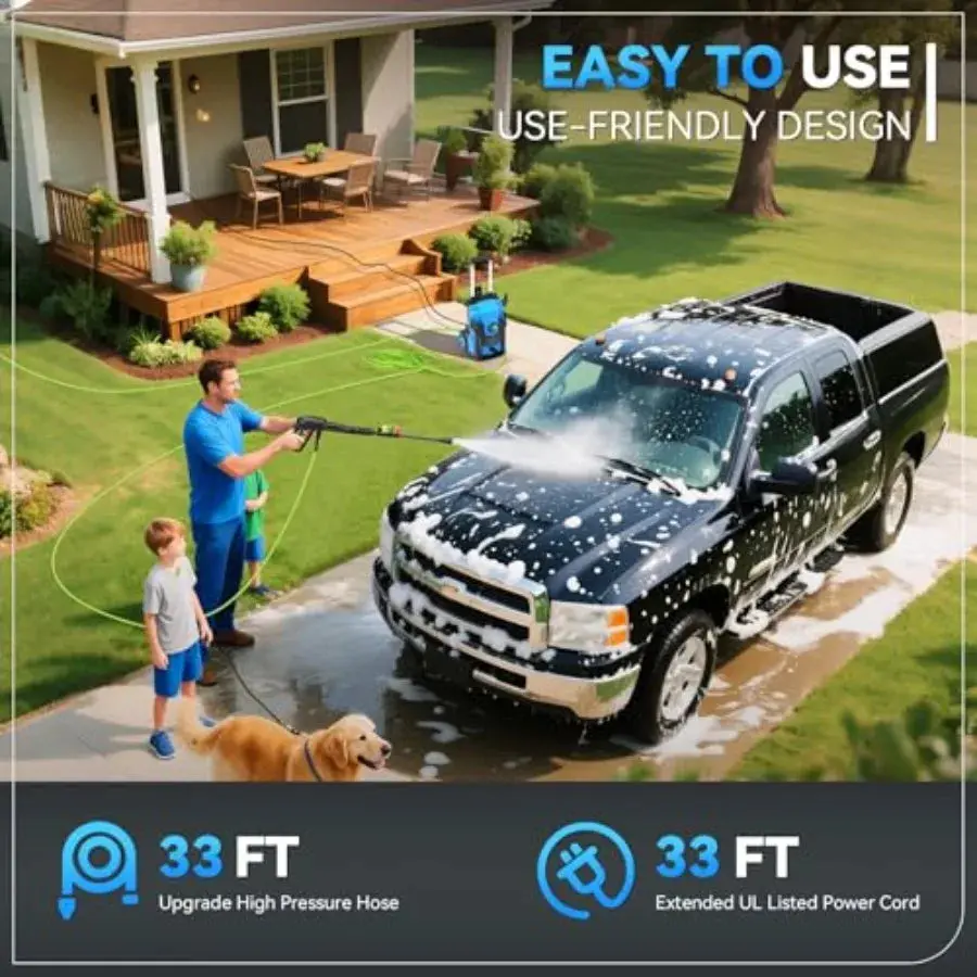 Electric Pressure Washer 5000 PSI 4.0 GPM Heavy Duty Power Washer with 4 Nozzles Foam Cannon 33FT Hose Reel and 500ml Soap Bott